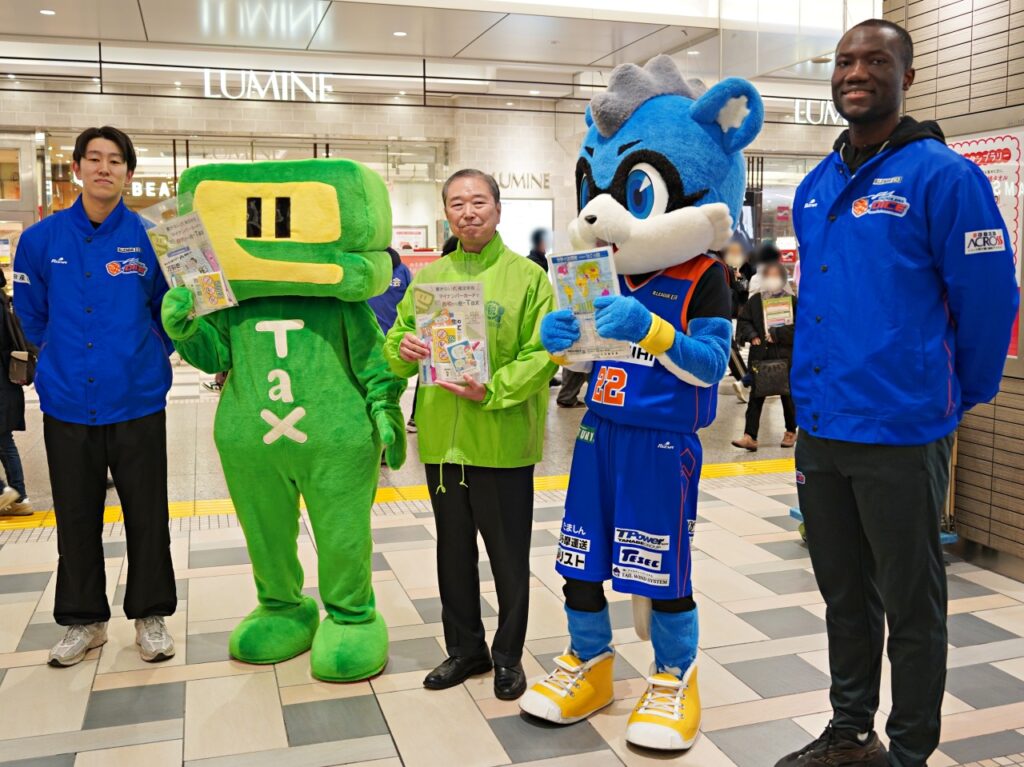 横浜エクセレンスのマスコット「Pick&Roll」が遊びにきてくれましたよ! 写真に写っているのがRoll(ロール)です。周りからは歓声が上がりました。