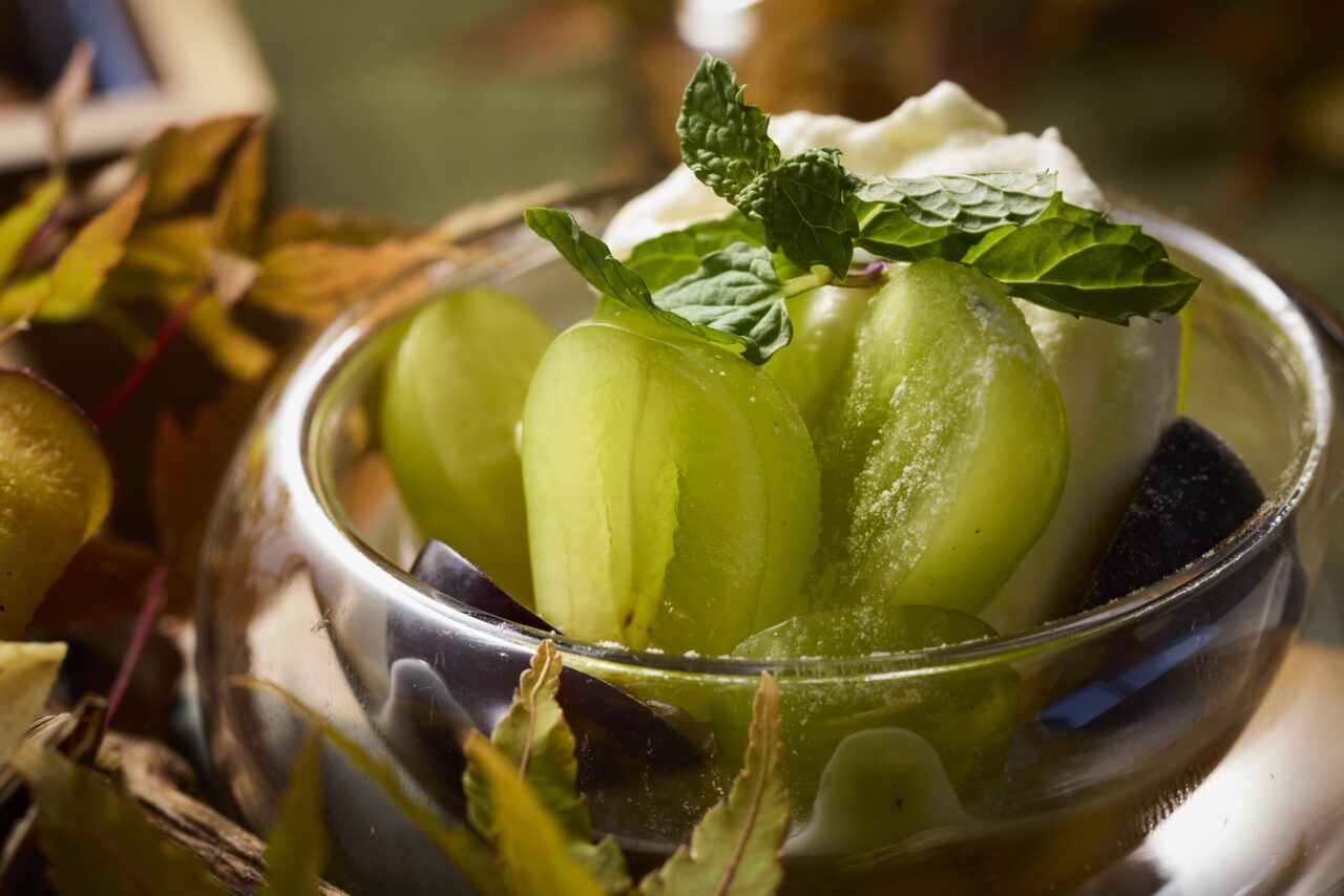 クラフトビール「立飛ヴァイツェン」で仕立てたぶどうのミニパフェ