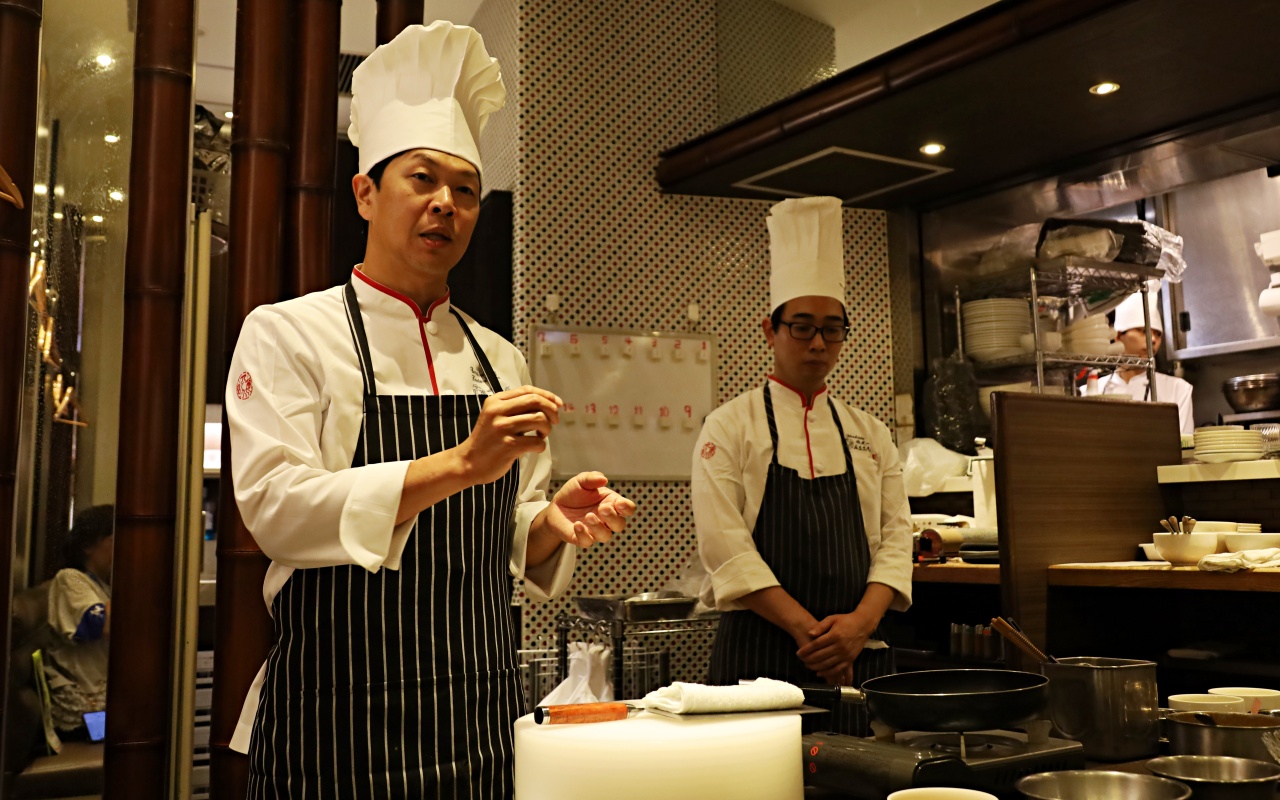 参加者はメモ帳を片手に「油はしっかり熱してから」「香味野菜を入れた瞬間が勝負」といった解説を一字一句逃すまいと耳を傾けます。