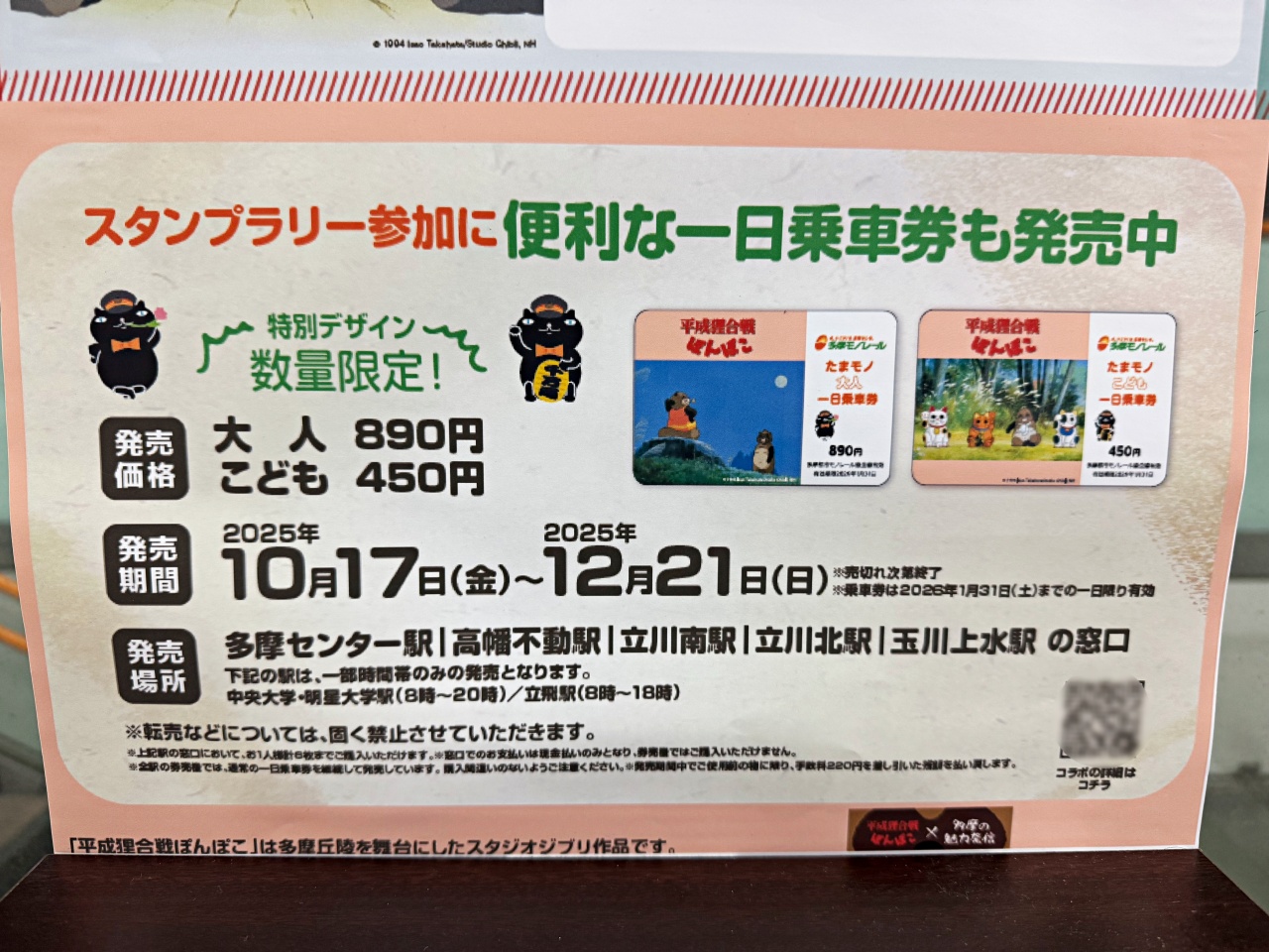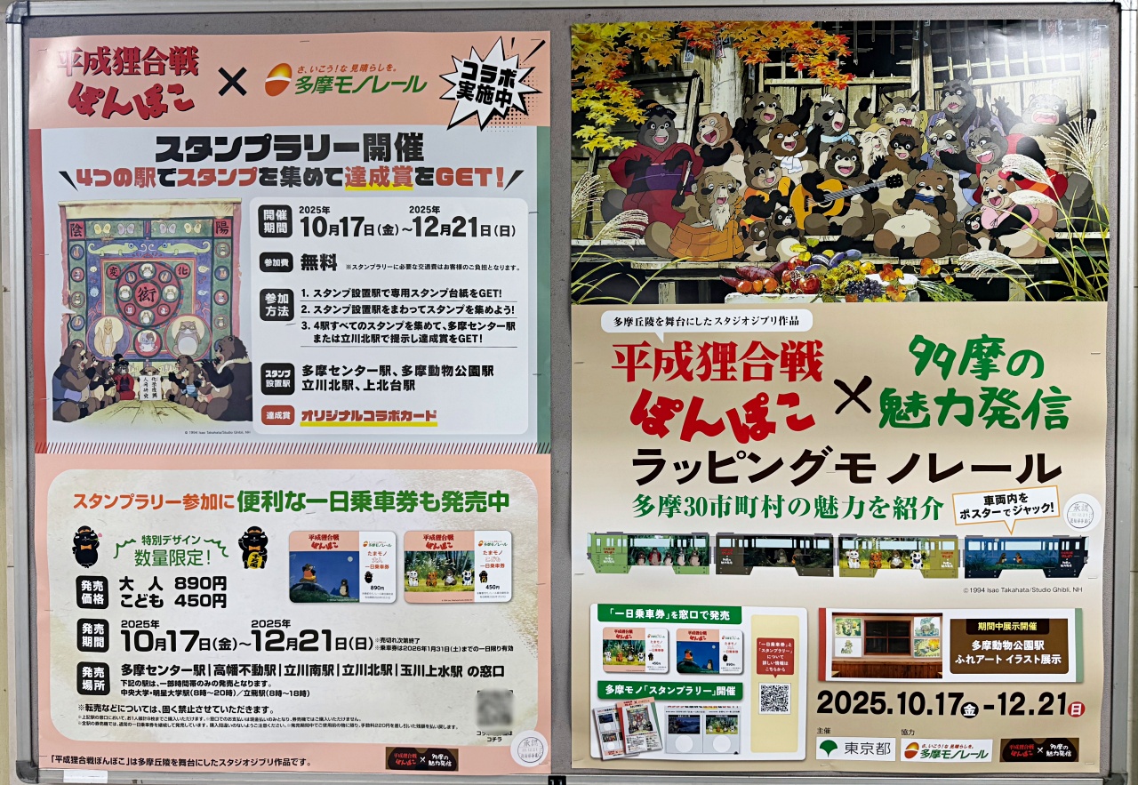 2025年10月17日(金)より、スタジオジブリの名作『平成狸合戦ぽんぽこ』(監督:高畑勲)と多摩都市モノレールがコラボした特別ラッピング列車の運行がスタートしました!