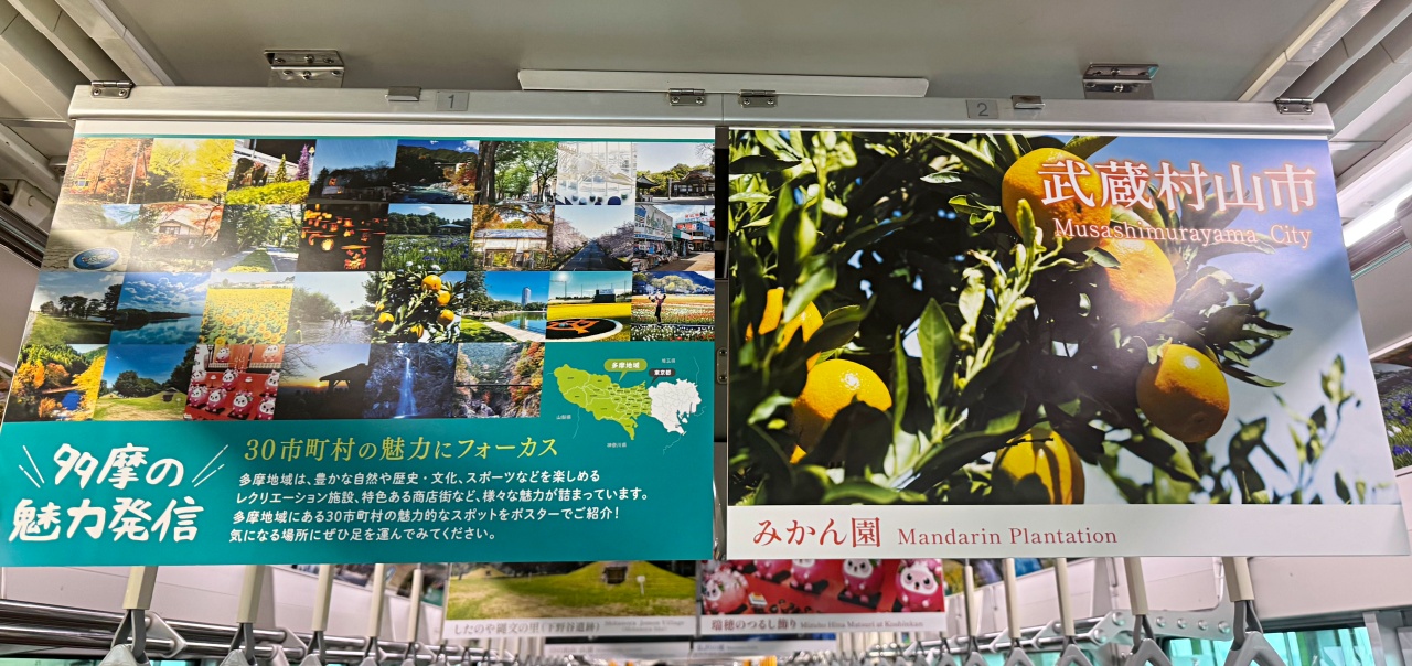 車体全体が作品の世界観で包まれたフルラッピングモノレールとなっており、車内には多摩30市町村それぞれの魅力スポットを紹介するポスターがずらり。乗るだけで多摩めぐりが楽しめます♪