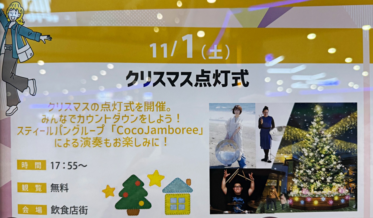 【昭島市】モリタウンにクリスマス到来! 11月1日(土)はツリー点灯式。スティールパンの生演奏も!