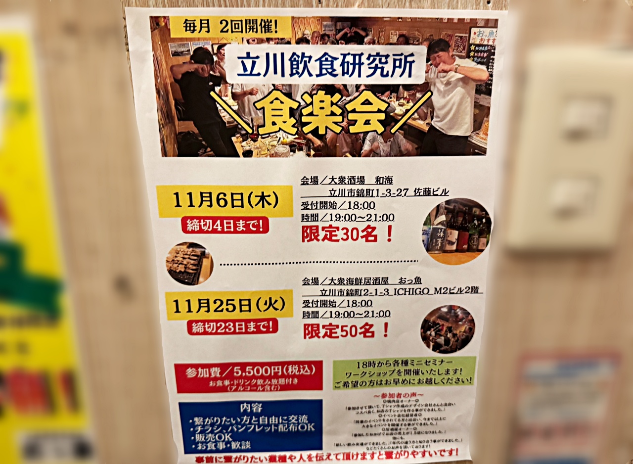 毎月恒例となっている立川の人気グルメ交流イベント「食楽会」。