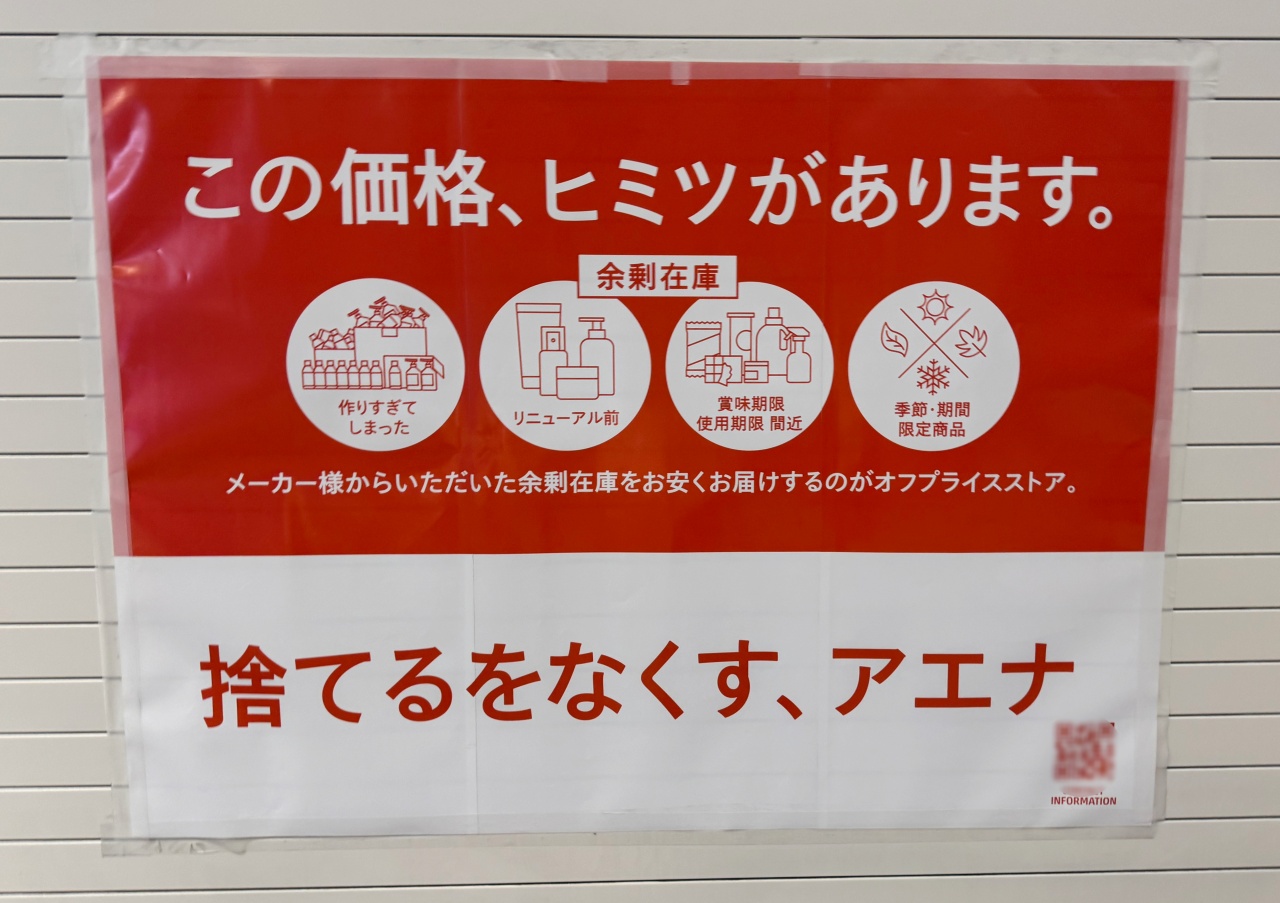 「アエナ」は、コスメ・食品・雑貨などを中心に、毎日変わる品揃えと驚きの価格で楽しめるオフプライスストア。いいものをより手に届きやすくをコンセプトに、メーカーの在庫商品や季節限定品などをお得に販売。