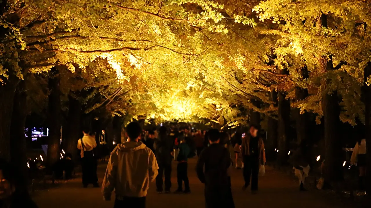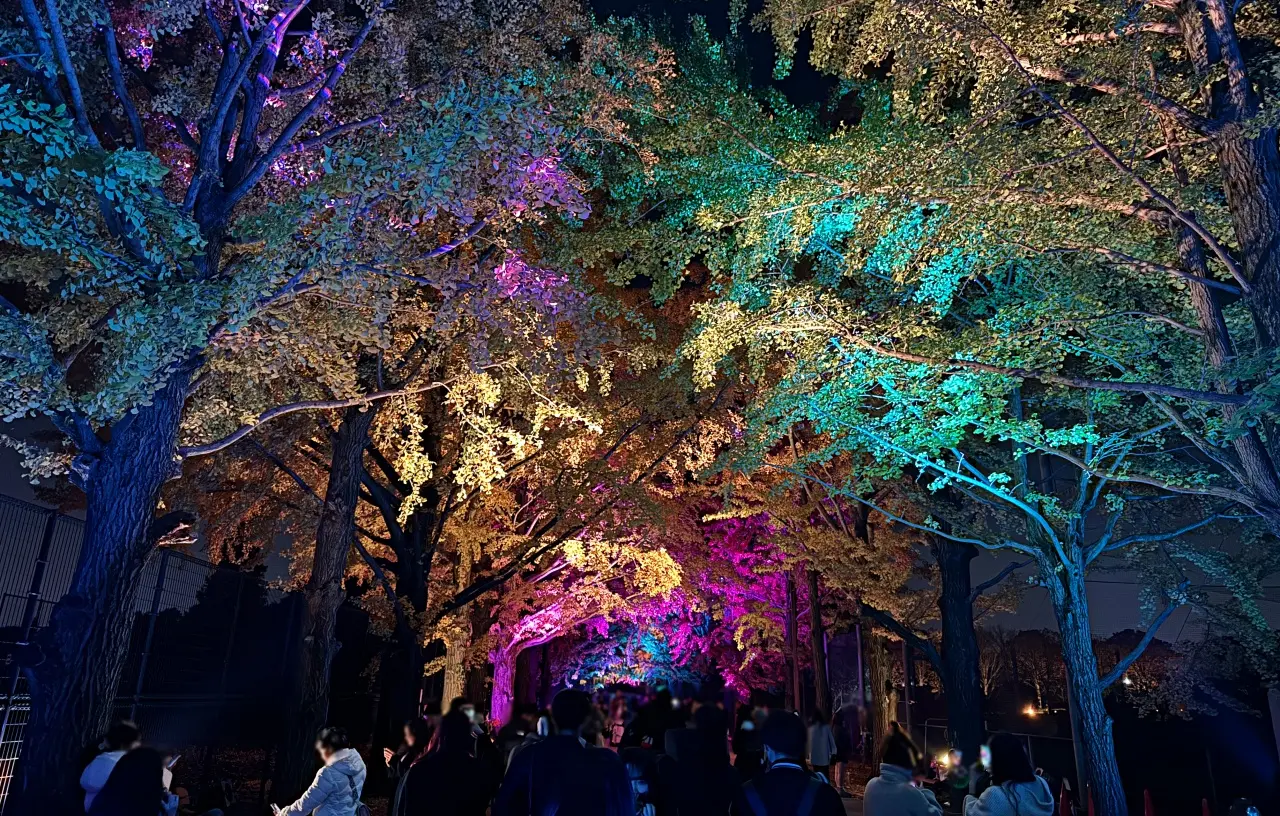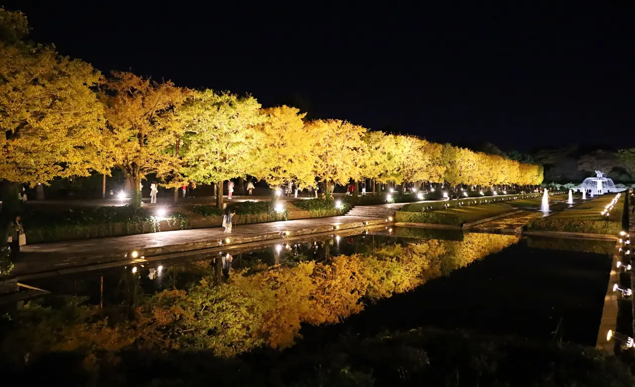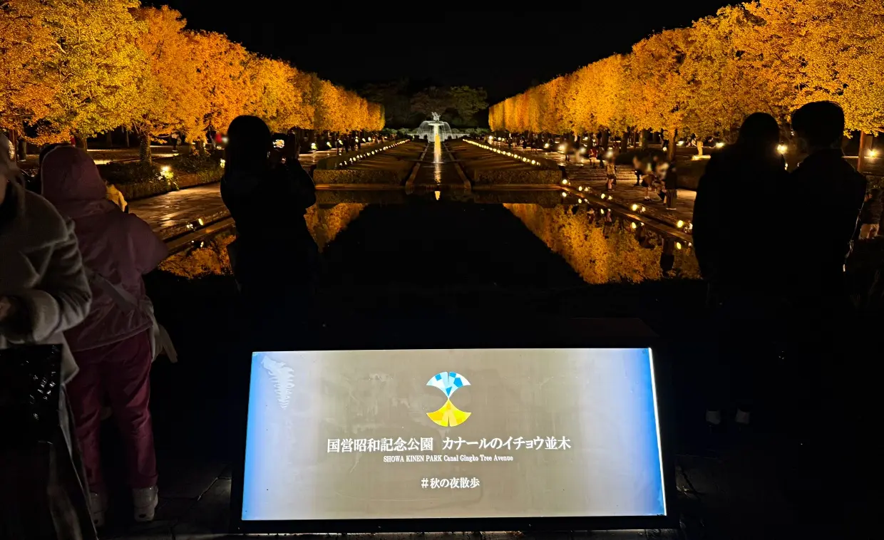【立川市・昭島市】国営昭和記念公園の紅葉ライトアップが今まさに見頃!「秋の夜散歩2025」カナール・イチョウ並木・日本庭園が幻想的。