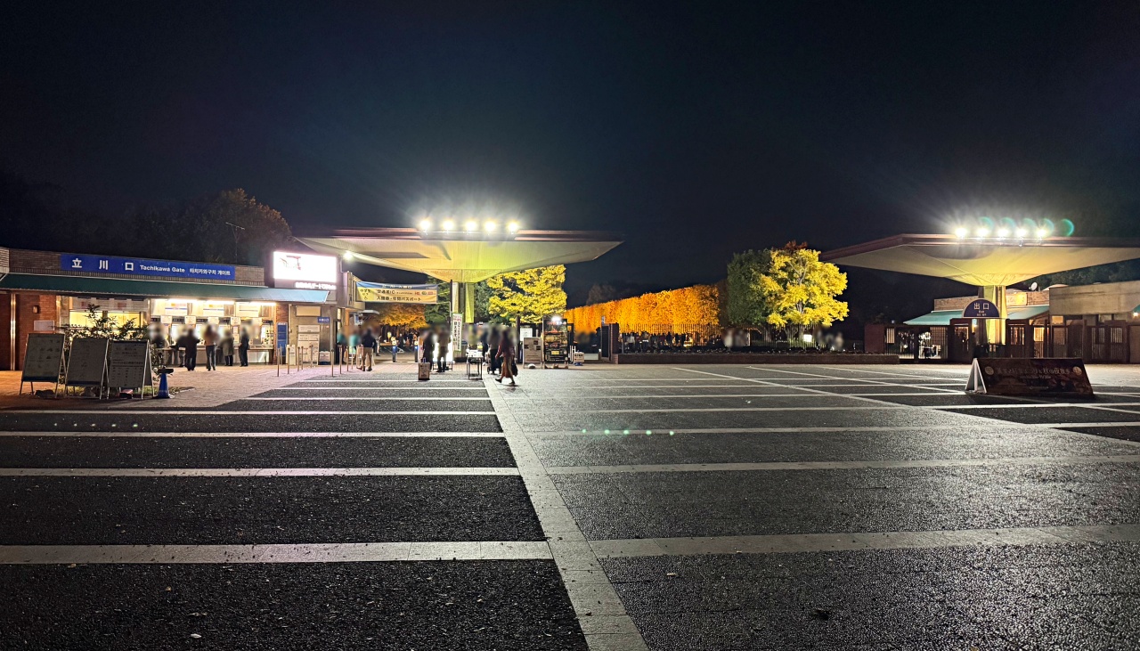 20:10に西立川口から入園しても、日本庭園ライトアップには間に合いません。