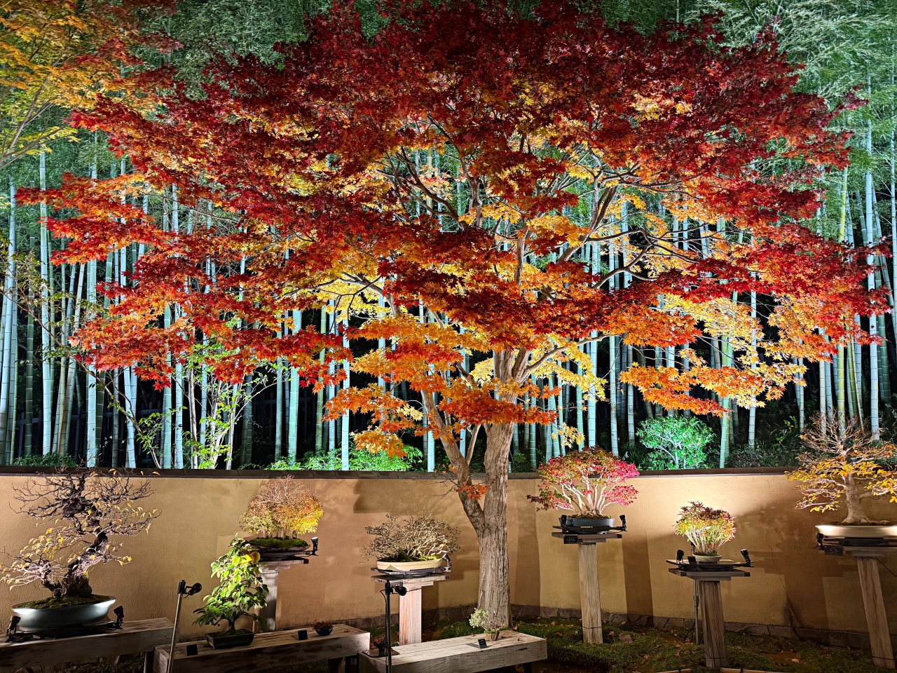 普段見られない銘品の特別展示に加え、竹林と紅葉が光で際立つ幻想的なエリアです。