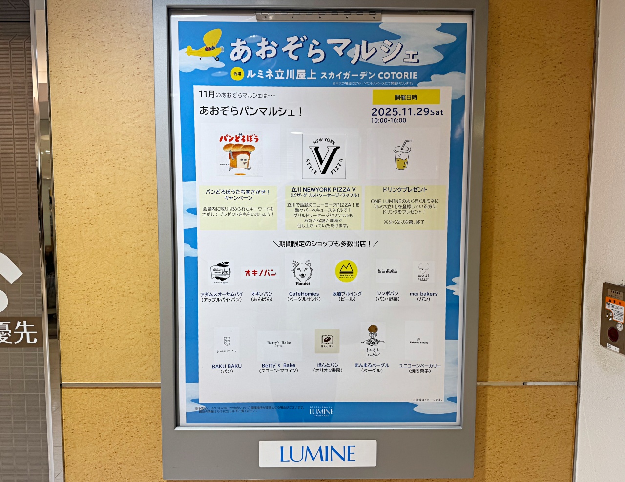 【立川市】屋上がパン天国に!ルミネ立川で「あおぞらパンマルシェ」開催へ【11/29限定】