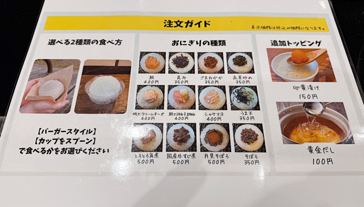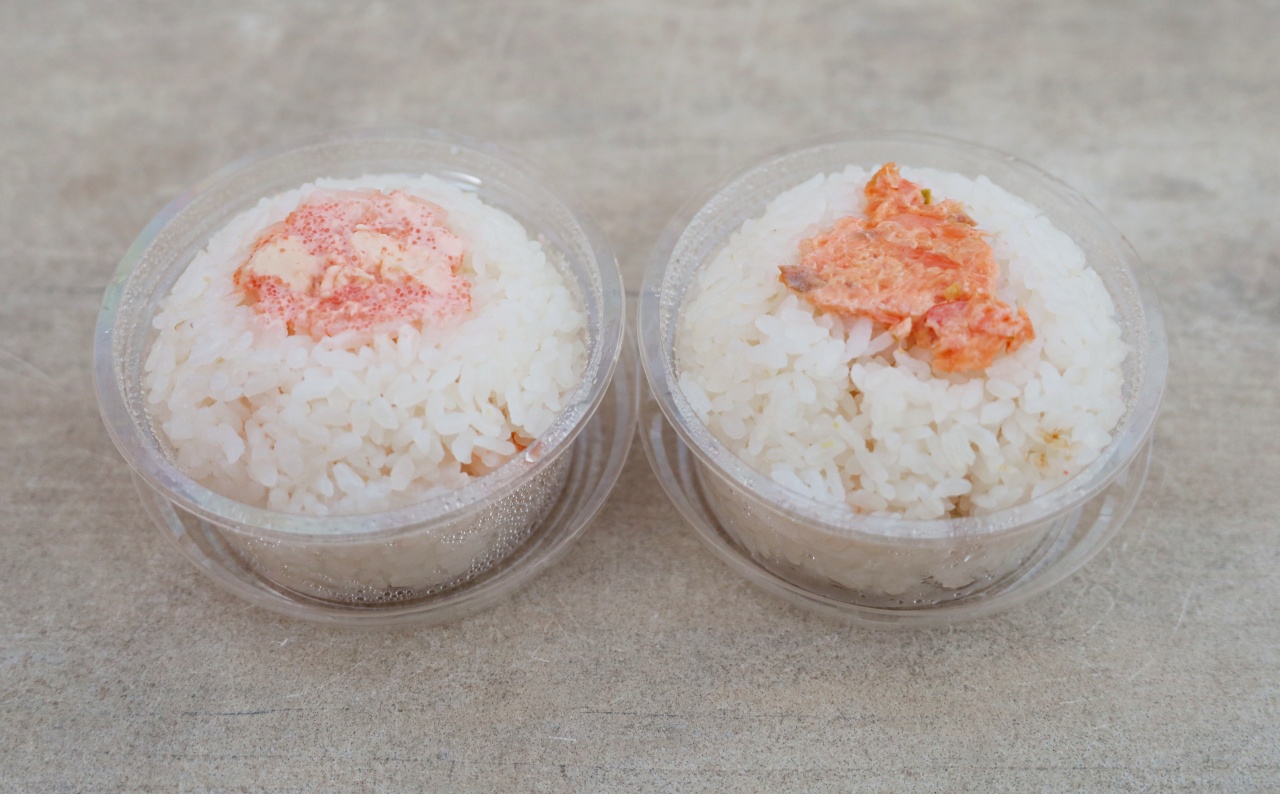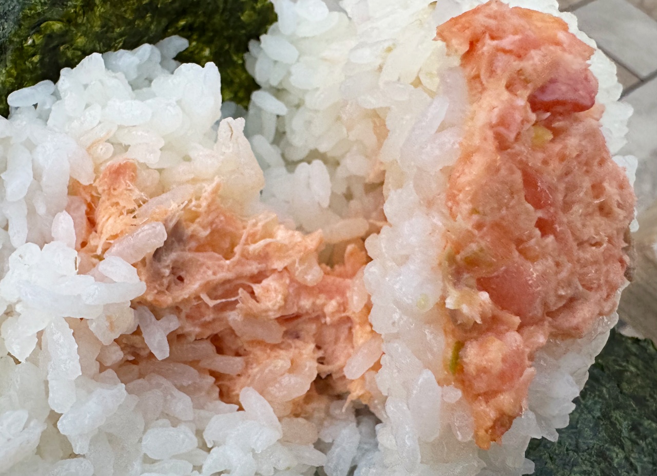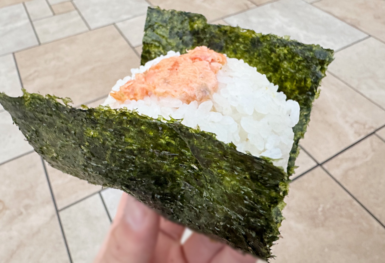 上に具がのっているだけでなく、中にもぎっしり入っていました。ご飯はふわふわ、具材はたっぷり。1個でかなり満足感があります。