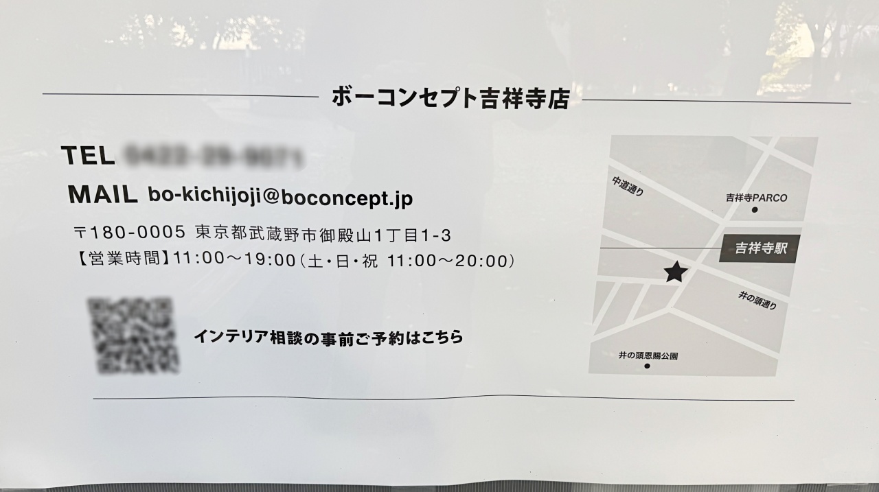 閉店にともない、近隣で最もアクセスしやすい店舗はBoConcept 吉祥寺店となります。