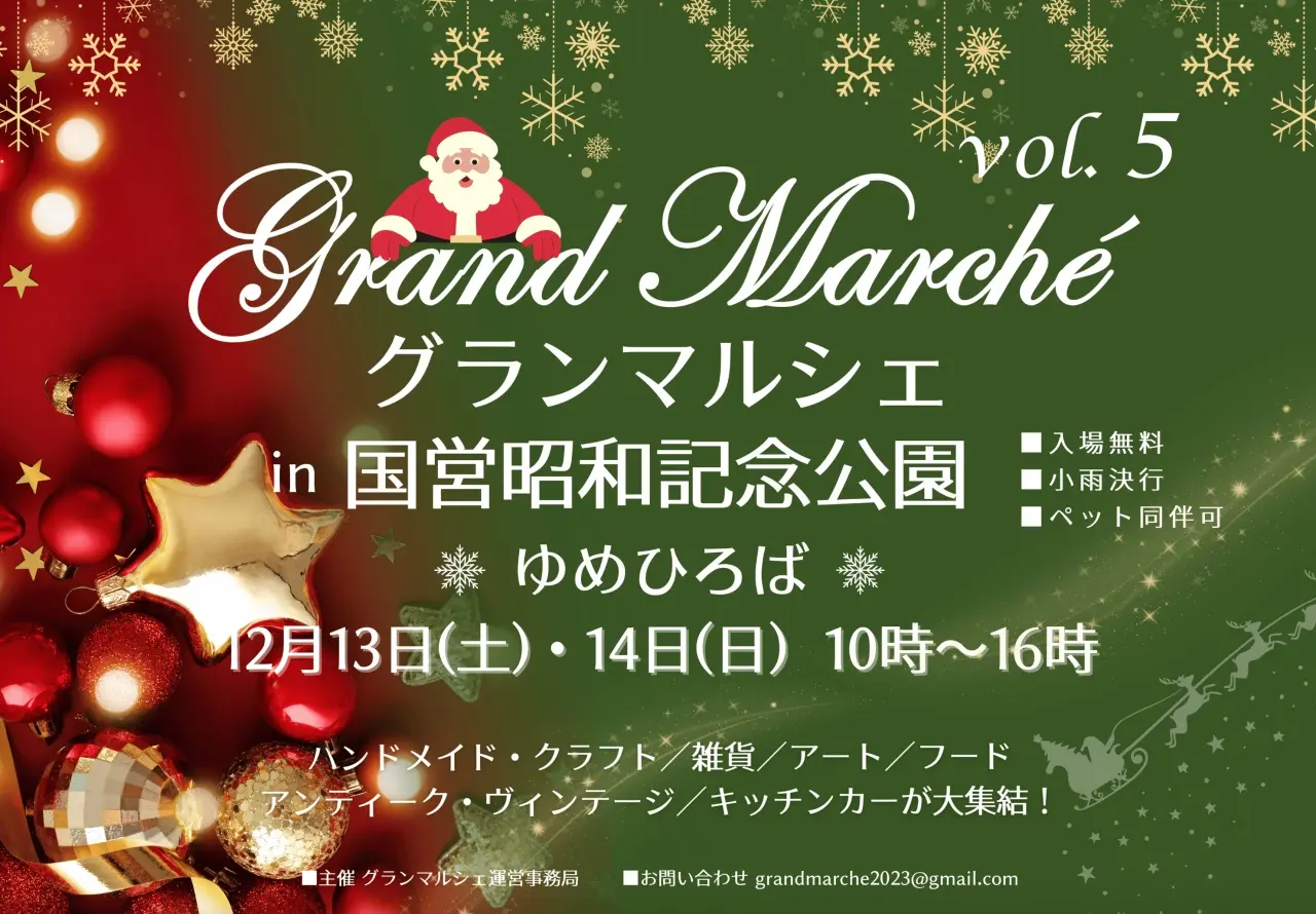 国営昭和記念公園の無料エリア「ゆめひろば」で、2025年12月13日(土)・14日(日)の2日間、「グランマルシェ vol.5 in 国営昭和記念公園」が開催されます。