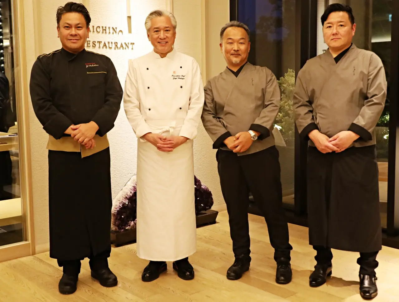 登壇したのは、立川を「第二の故郷」と語る中国料理の巨匠・脇屋友詞シェフ、オーベルジュ ときとの総合プロデューサー・総料理長 石井義典氏、総支配人・料理長 大河原 謙治氏、そしてソラノホテル ダイチノレストラン 総料理長 福原 義昭氏です。
