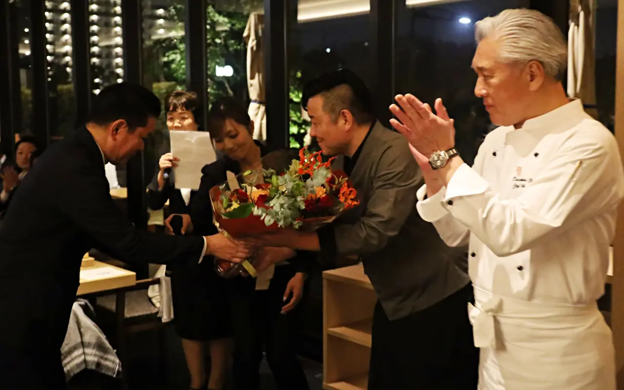 「料理を始めて35年以上になります。私が修業を始めた頃、脇屋シェフは雲の上の存在でした」と尊敬の念を述べ、会場には温かな空気が流れました。