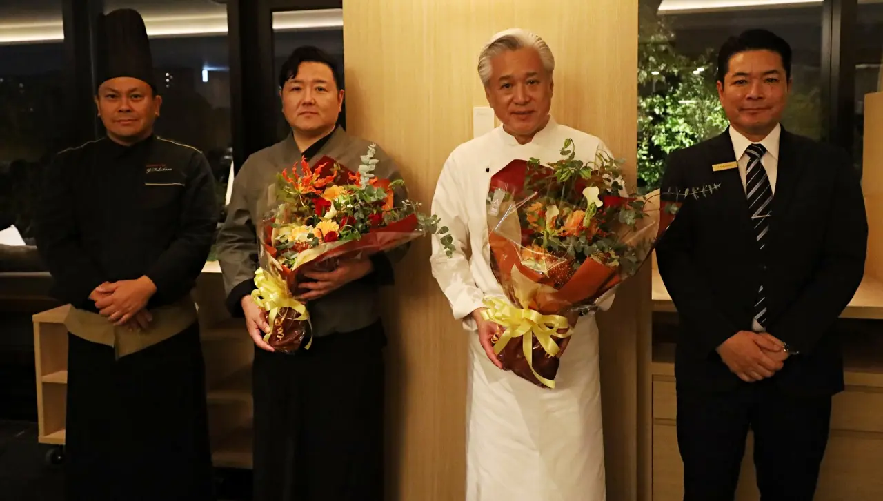10月8日(水)パリでの『ミシュランガイドグローバルホテルセレクションセレモニー』において、オーベルジュときとが1ミシュランキーに選ばれ、掲載されることになったことを記念してお祝いの花束が贈られました。