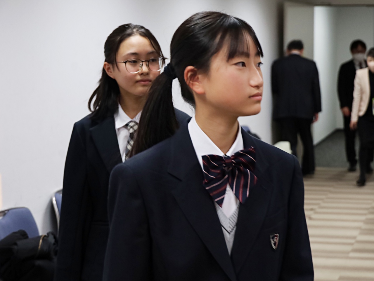 中学生の「税についての作文」は、立川税務署管内6市の中学校34校から3431編の応募があり、特に優秀な2編に、「税の標語」は、立川税務署管内6市の中学1年生を対象に33校から11178点の応募があり、特に優秀な2作品に、小学生の「税の絵はがき」は、立川税務署管内6市の小学6年生を対象に17校から793点の応募があり、特に優秀な1作品に、それぞれ立川税務署長賞が贈呈されます。時間になると、立川税務署長賞に選ばれた小・中学生が会場に入場!