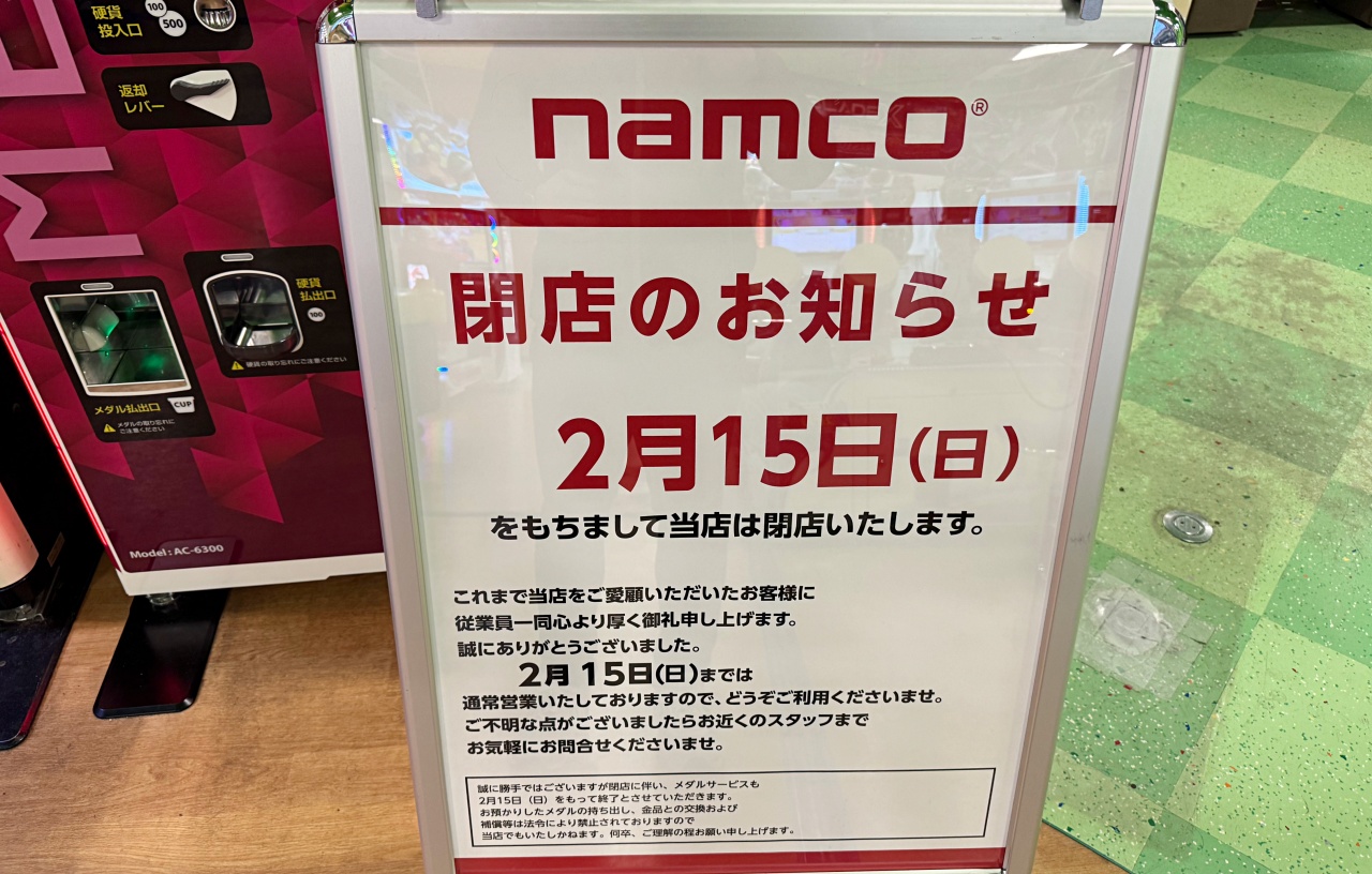 今回の閉店については、店舗内の掲示およびバンダイナムコ公式サイトにて案内がされていました。