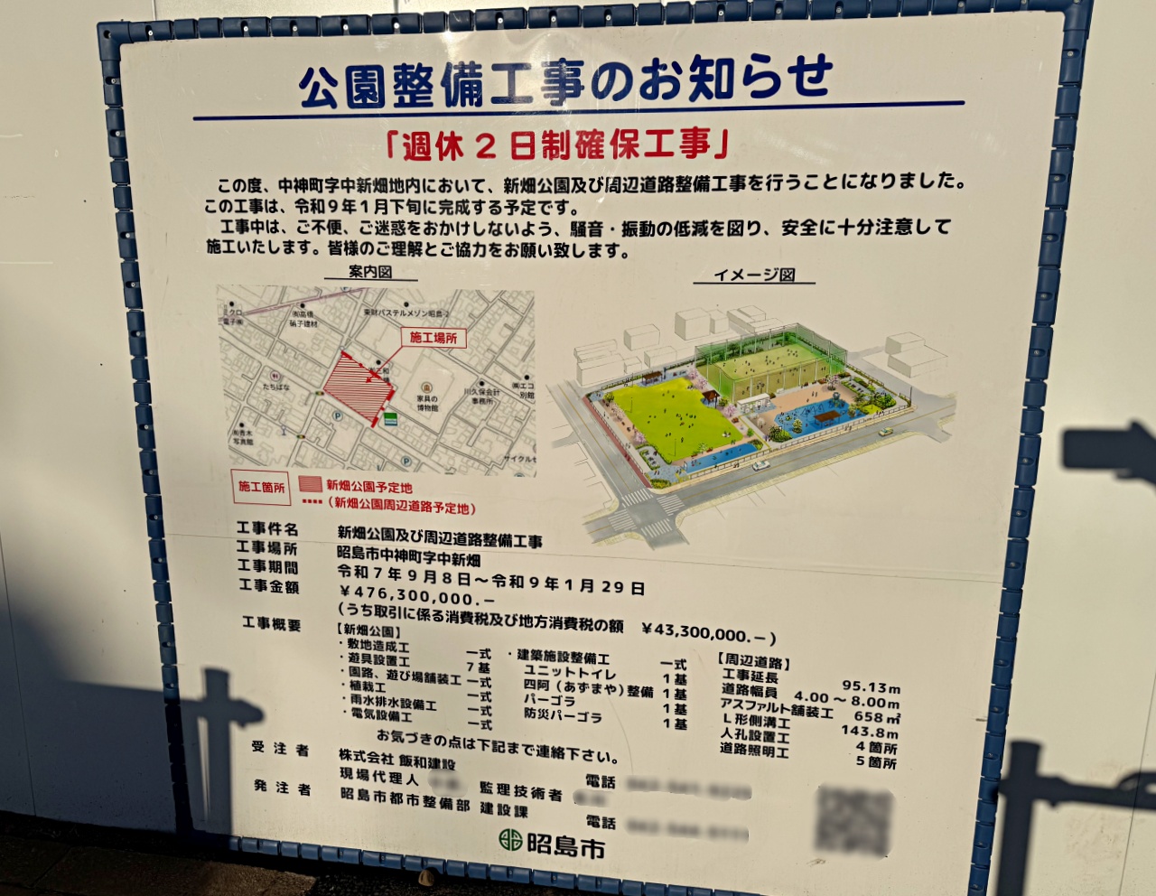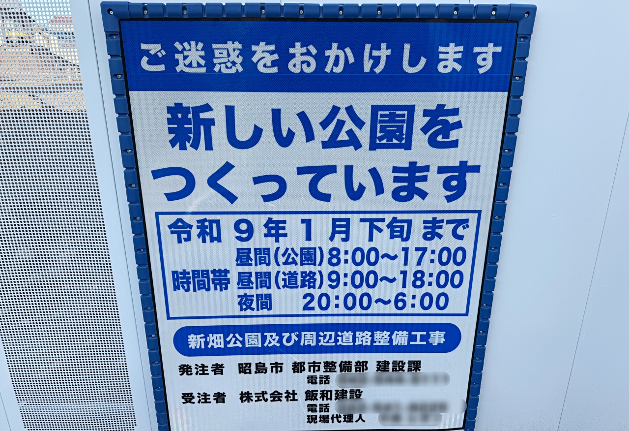 【昭島市】南文化公園に続く新スポット? 中神駅北側に「新畑公園」整備中。