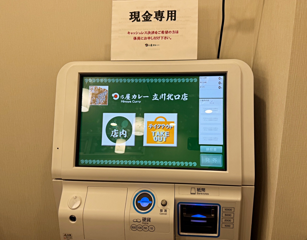 なお、食券機は現金専用のため、キャッシュレス決済を希望する場合は、スタッフの方に声をかけてください。
