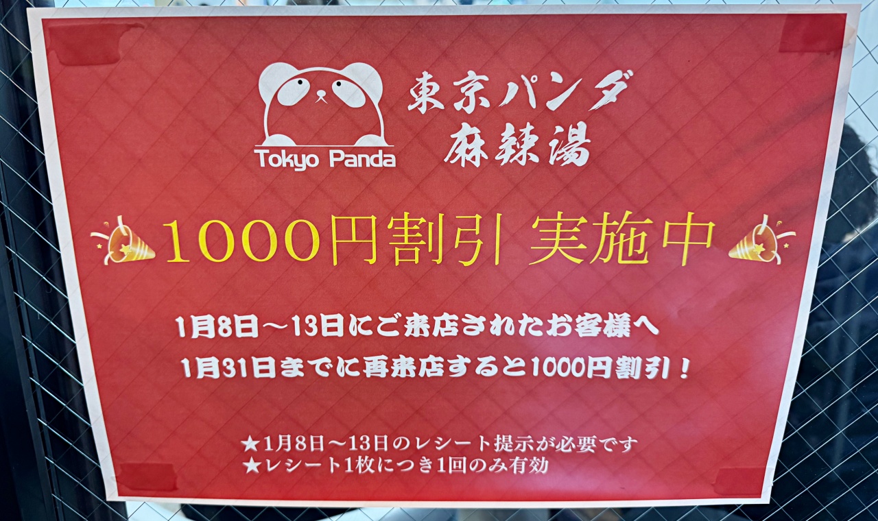 1月31日(土)までに再来店すると1,000円割引になるキャンペーンを実施中です。