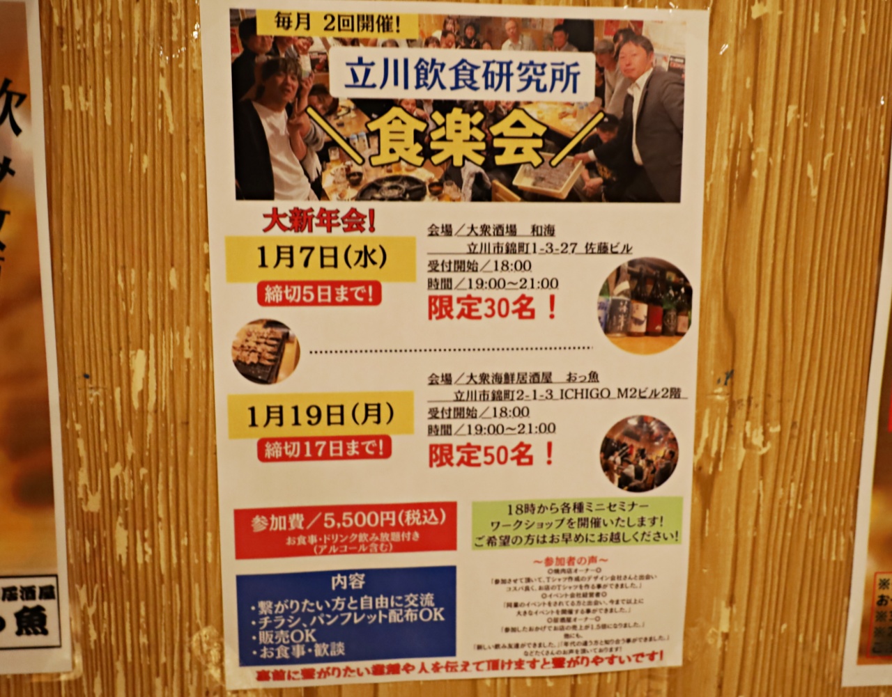 毎月恒例となっている立川の人気グルメ交流イベント「食楽会」。