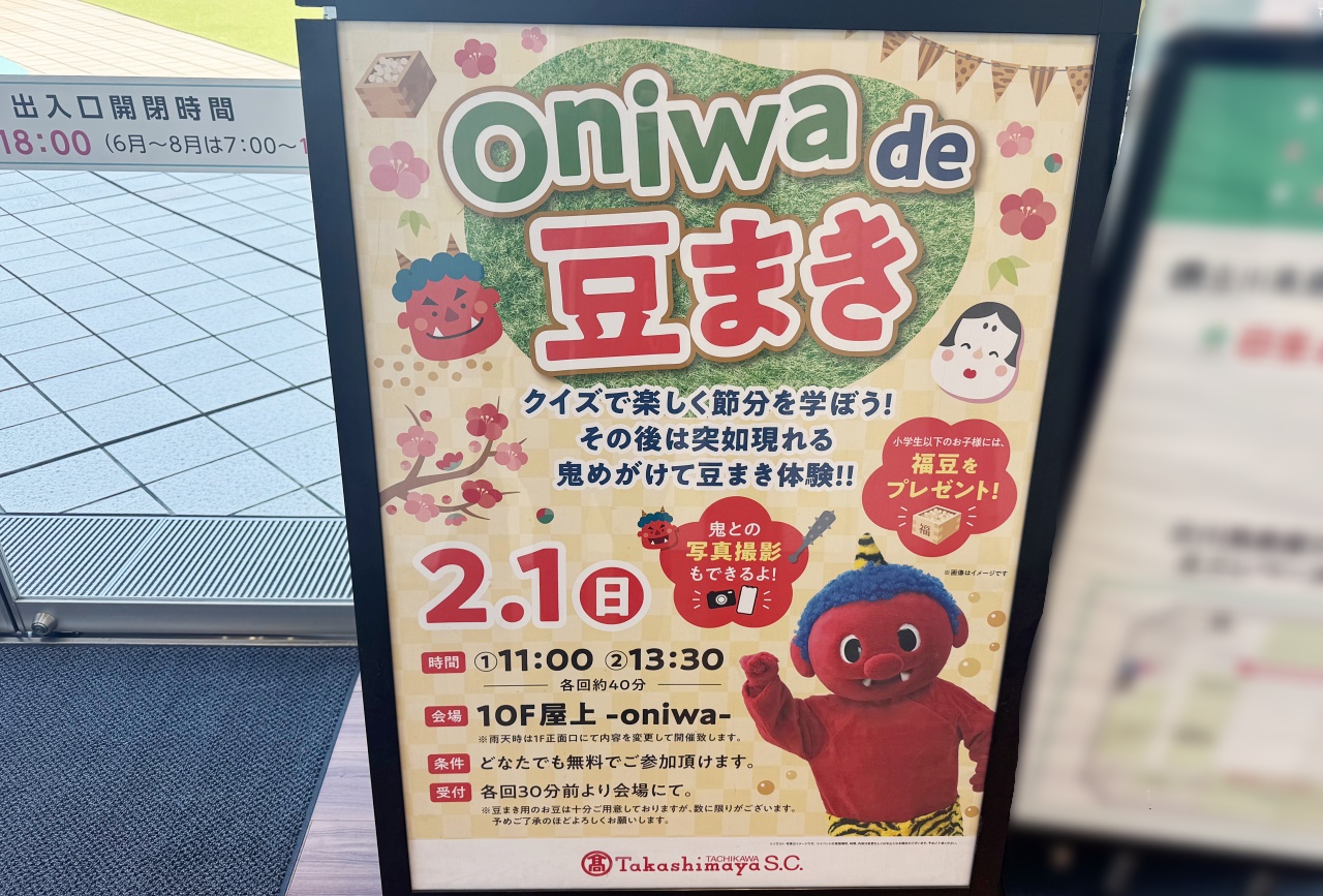 2026年2月1日(日)、立川高島屋S.C.屋上(10階)にある「おにわ-oniwa-」で、節分イベント「oniwa de 豆まき」が開催されます。