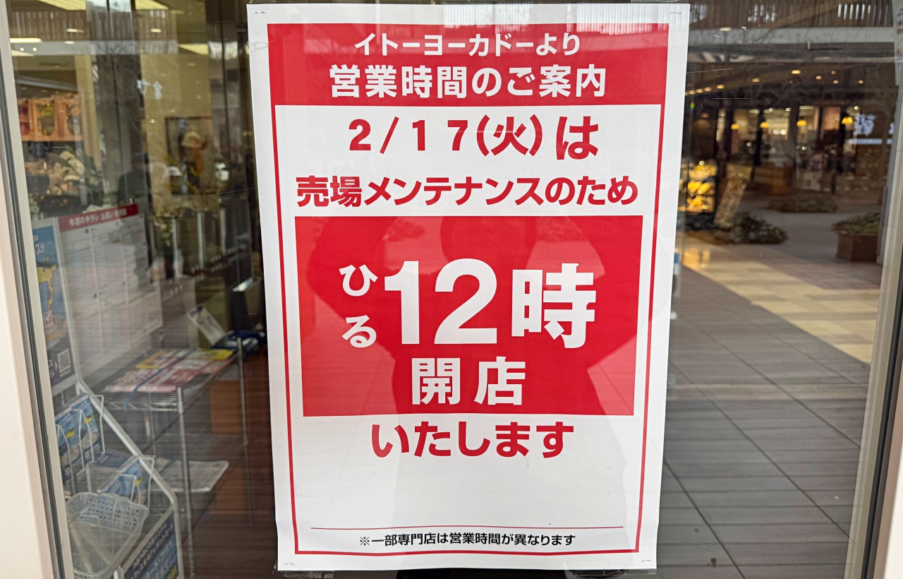 イトーヨーカドー 昭島店では、売場メンテナンス実施のため、2月17日(火)は通常より開店時間が遅くなります。当日は、通常10時開店のところ、ひる12時からの営業となります。
