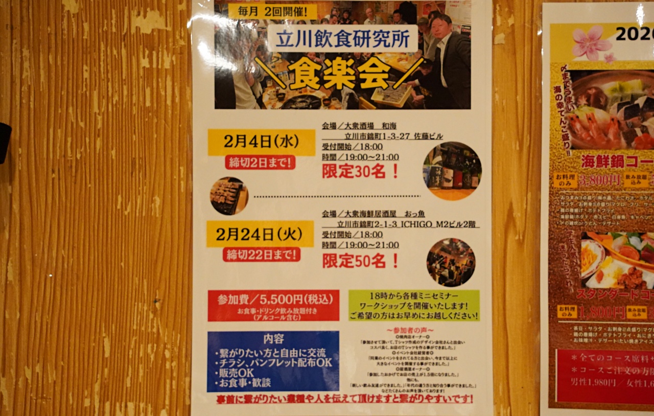 毎月恒例となっている立川の人気グルメ交流イベント「食楽会」。