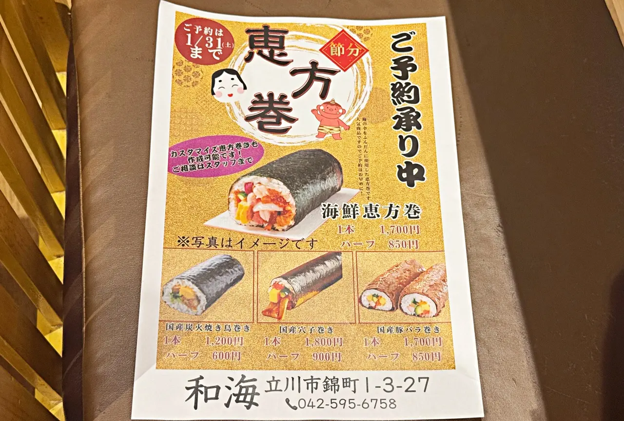 【立川市】全部サーモンも可能!? 食楽会でお披露目! 「和海」のカスタム可能な恵方巻が1/31まで予約受付中。