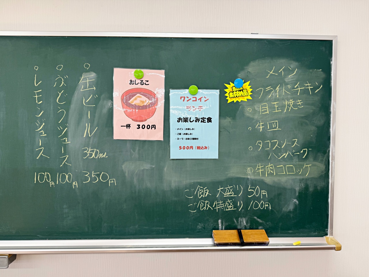最近、新たにワンコインランチ「お楽しみ定食」を始めたそうです。