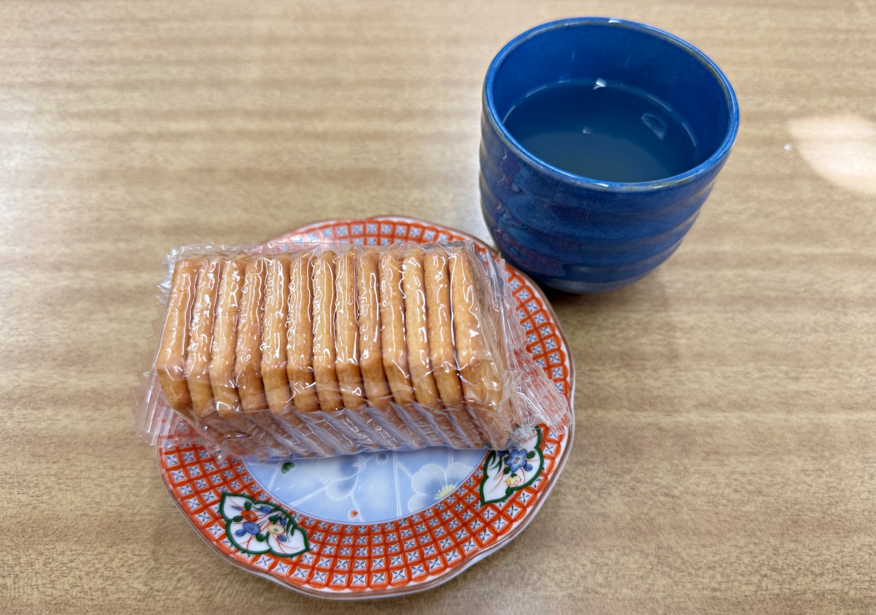 注文後には、サービスのドリンクとビスケットが提供され、料理を待つ間もゆったりとした時間を過ごせました。