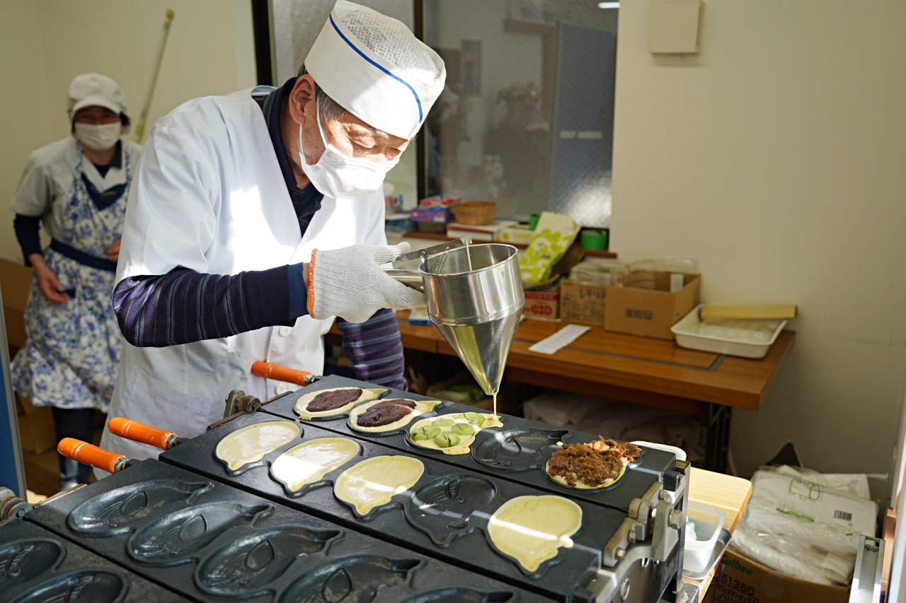 使用されているのは、お店のご主人がデザインした、かわいらしいくじらの鉄板。このデザインのくじら焼が買えるのは、こちらのお店だけです。