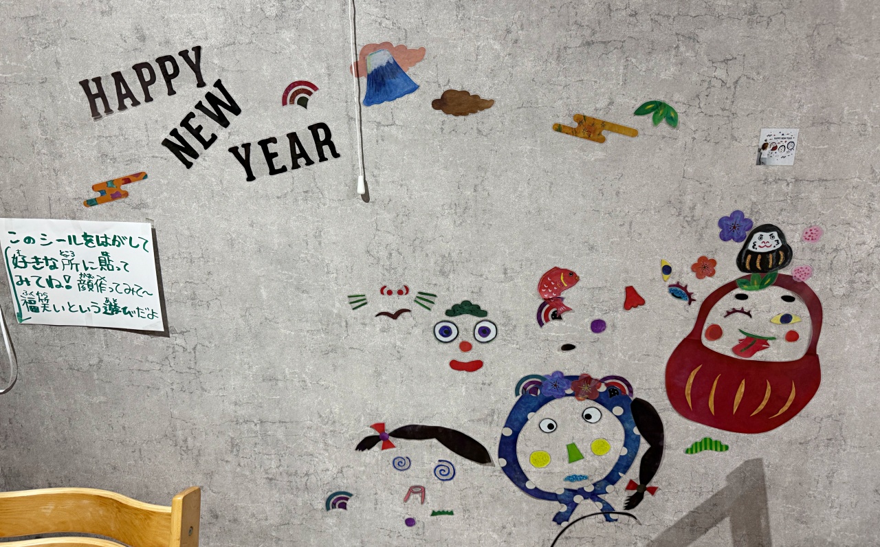 店内には、壁にシールを貼って遊べるコーナーも設けられており、お子さんが遊んでいる間に、ゆっくりお買い物ができる工夫も。