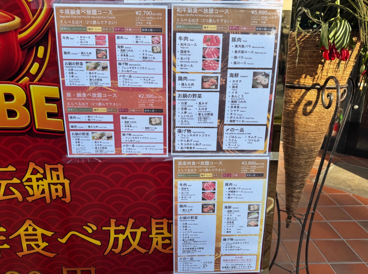 メニューは、4つの食べ放題コース(ディナー・終日)