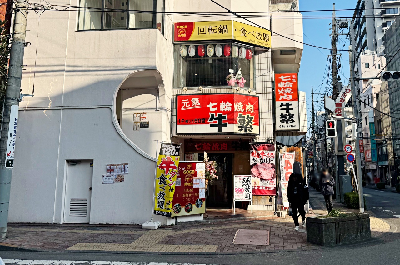 場所は、南口の「すずらん通り」を奥へ進み、「やすらぎ通り」に出たあたり。 1階に焼肉チェーン「牛繁 立川店」が入っているビルの上階にあります。
