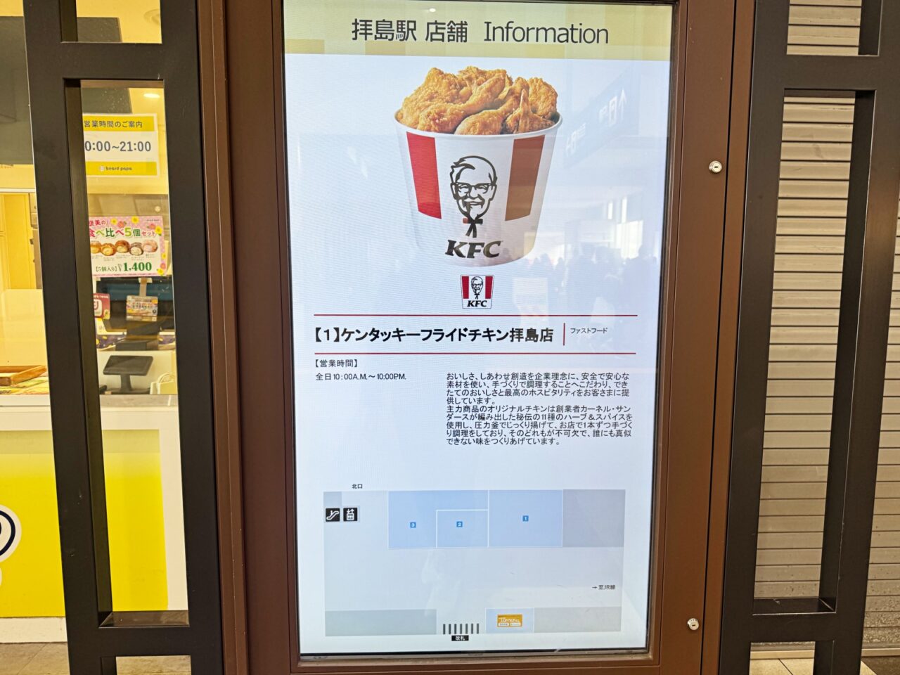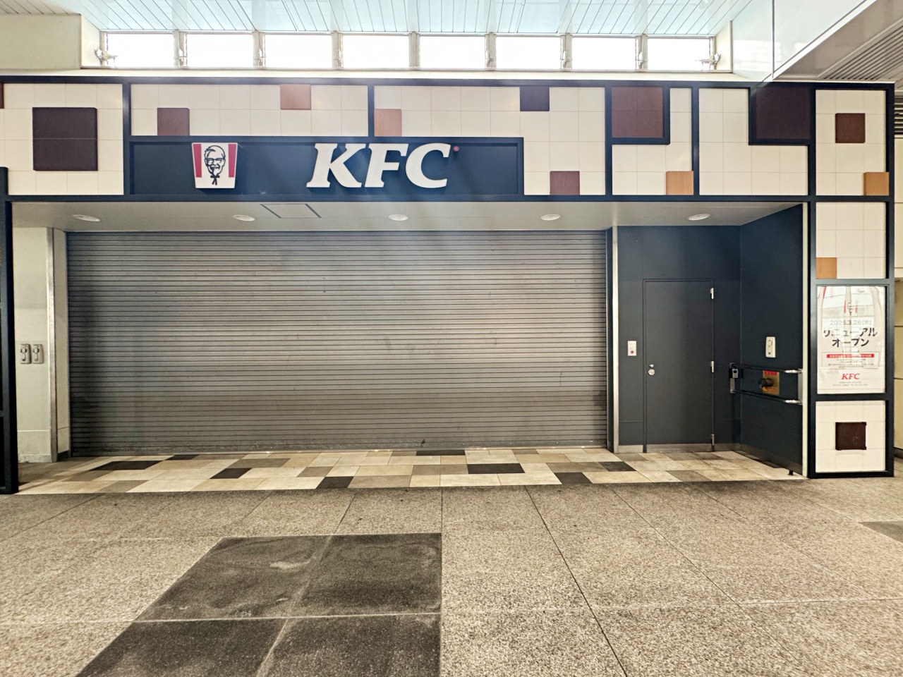 拝島駅構内にある「ケンタッキーフライドチキン西武拝島店」が、現在改装のため休業しています。