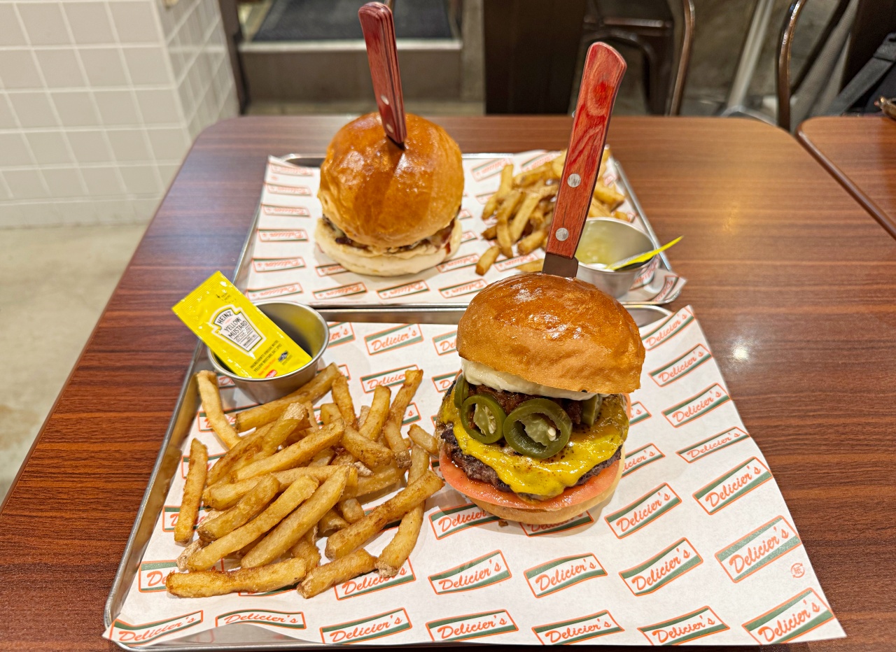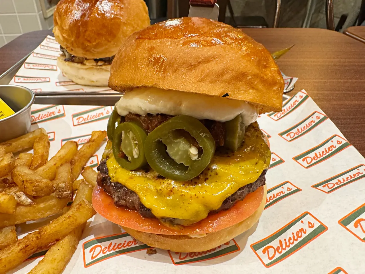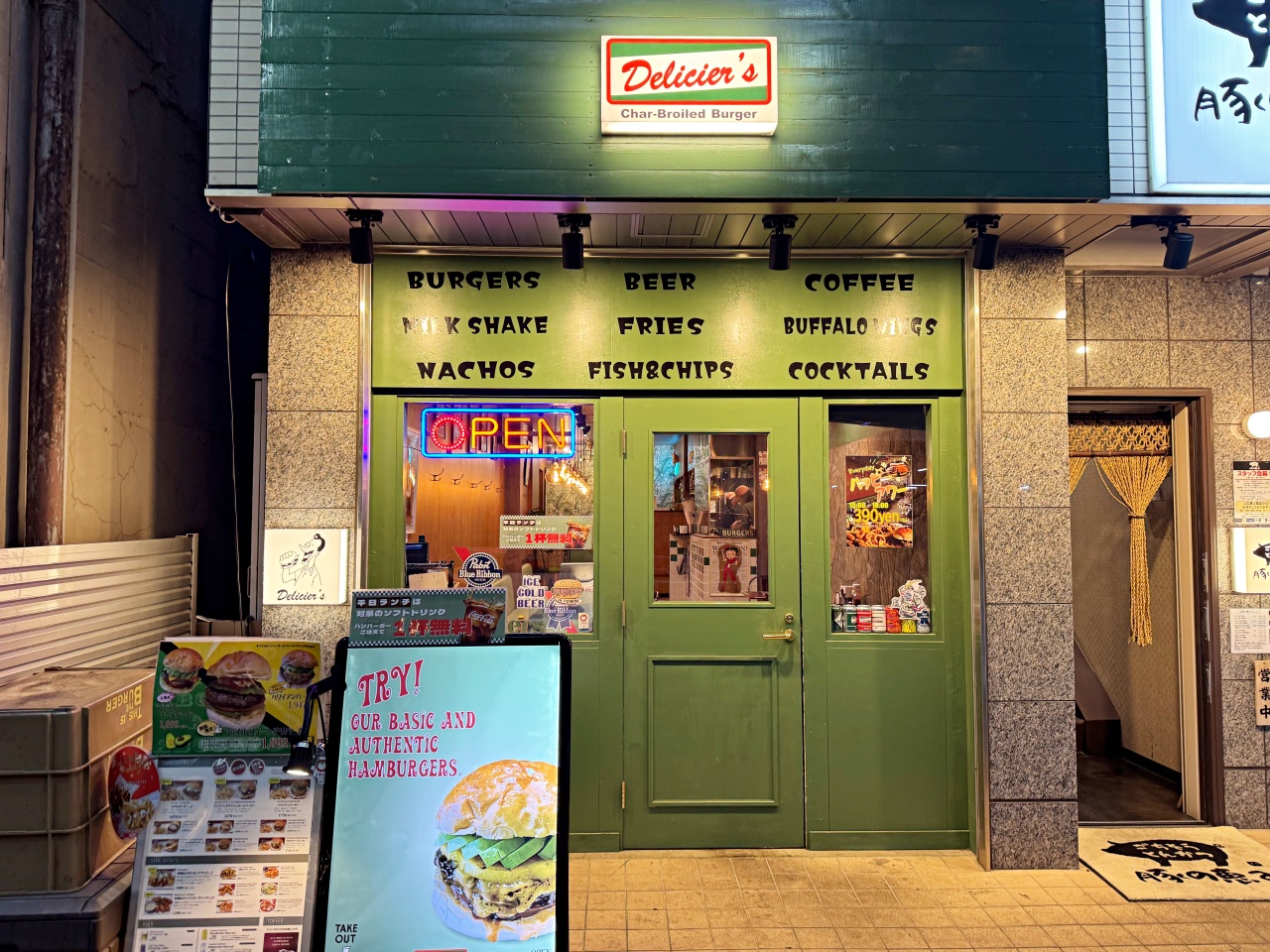 立川駅北口、昭和記念公園通り沿いの立川タクロス目の前。緑色の外観が目印の「Delicier’s(デリッシャーズ)」では、本格的な炭火焼きハンバーガーを楽しむことができます。