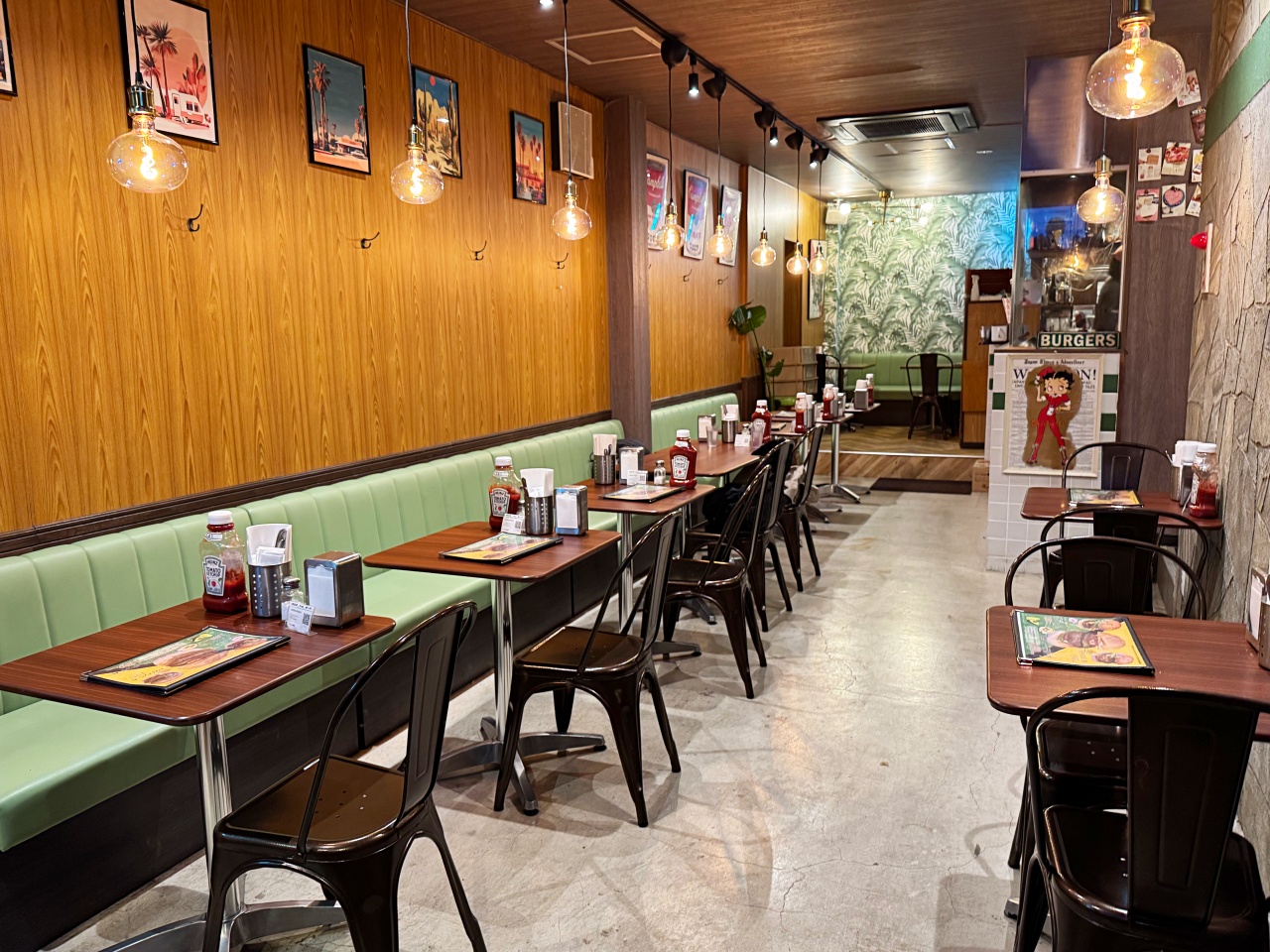 店内は温かみのあるアメリカンな雰囲気で、お席はゆっくり座れるテーブル席。