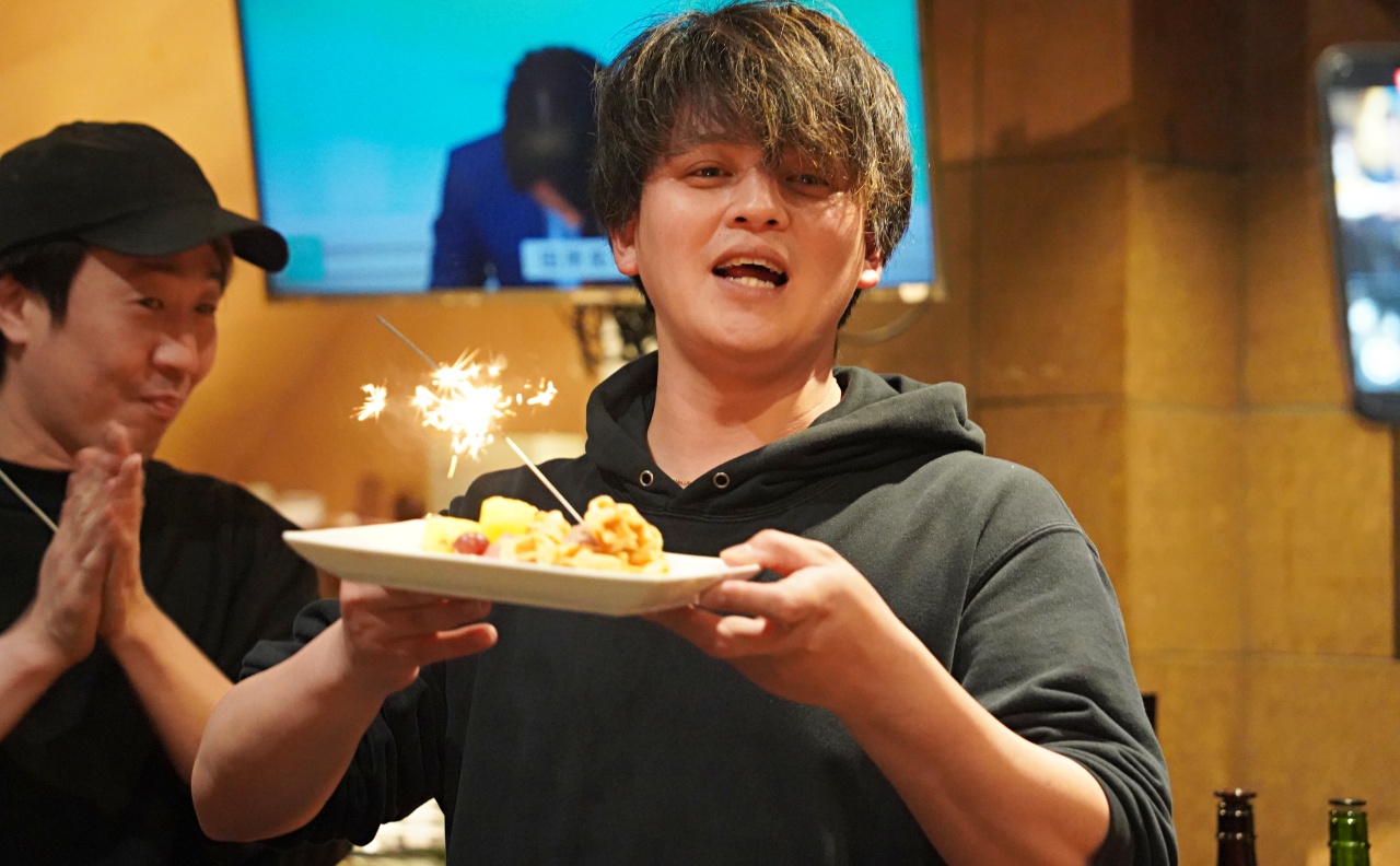 全員で手拍子をしてお祝いです。お祝いは全力で。素敵なお店です。