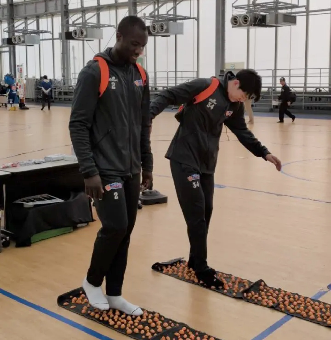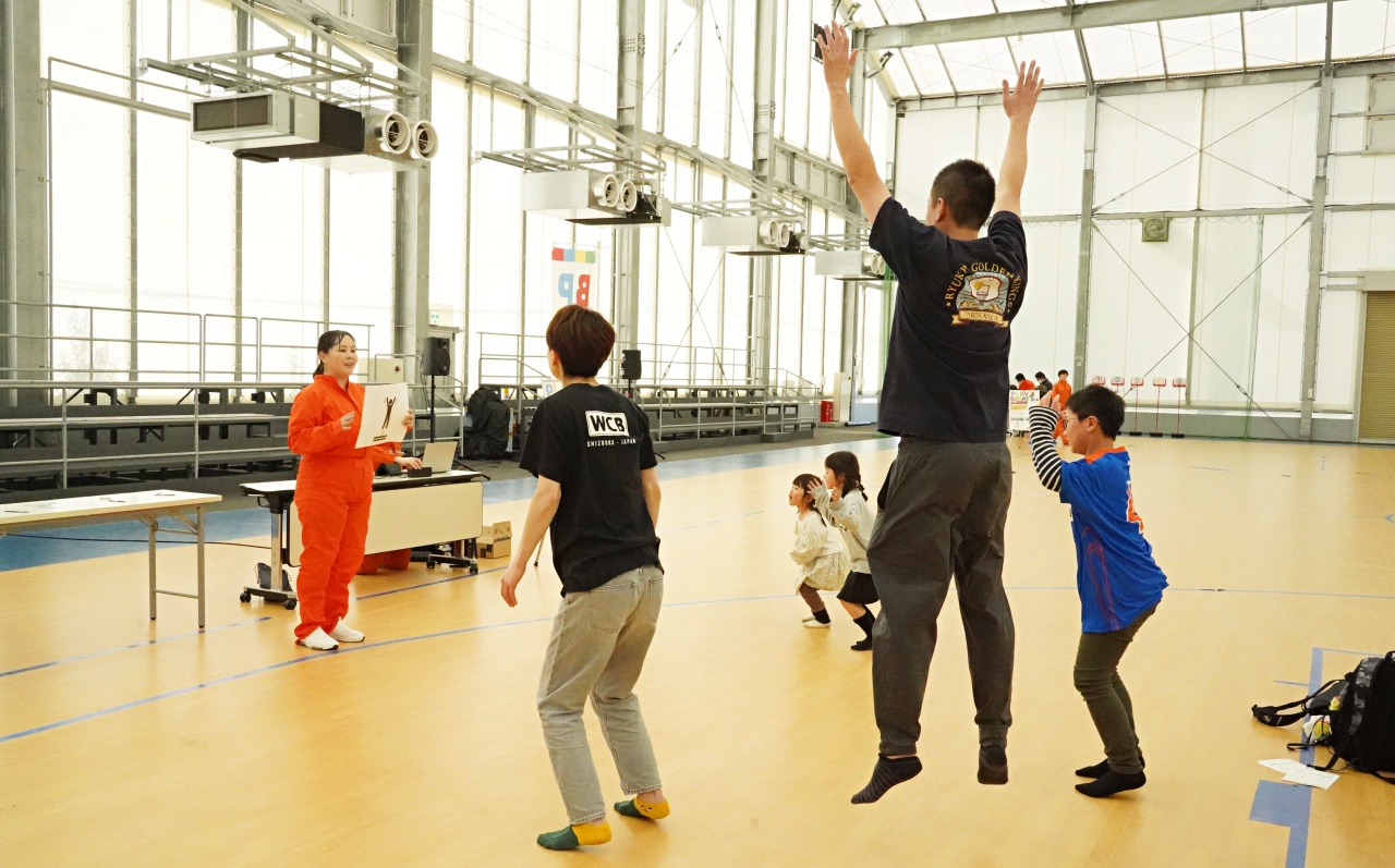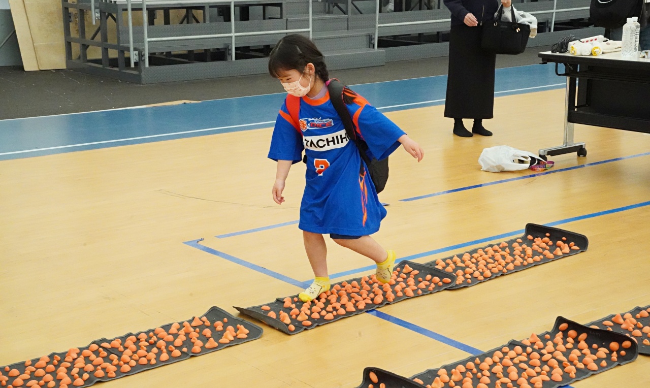 この日はプロバスケットボールチーム・立川ダイスのホームゲームが行われており、試合前には立川ダイスの選手たちもプログラムを体験していました。