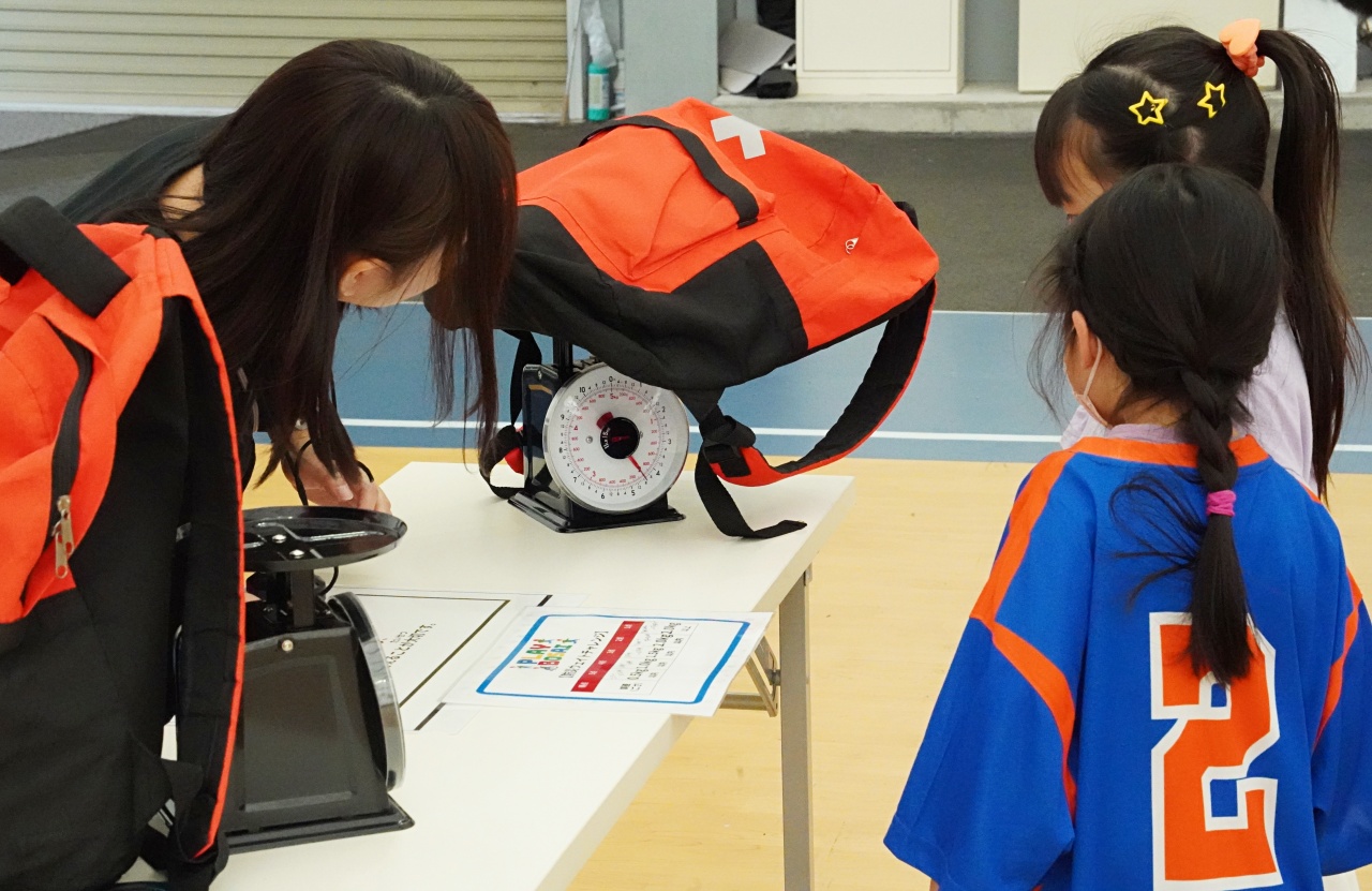 災害時に持ち出す非常持出袋について、「運べる重さを正しく見積もる力」と「荷物を背負った状態で安全に移動する力」を同時に体験するプログラムです。