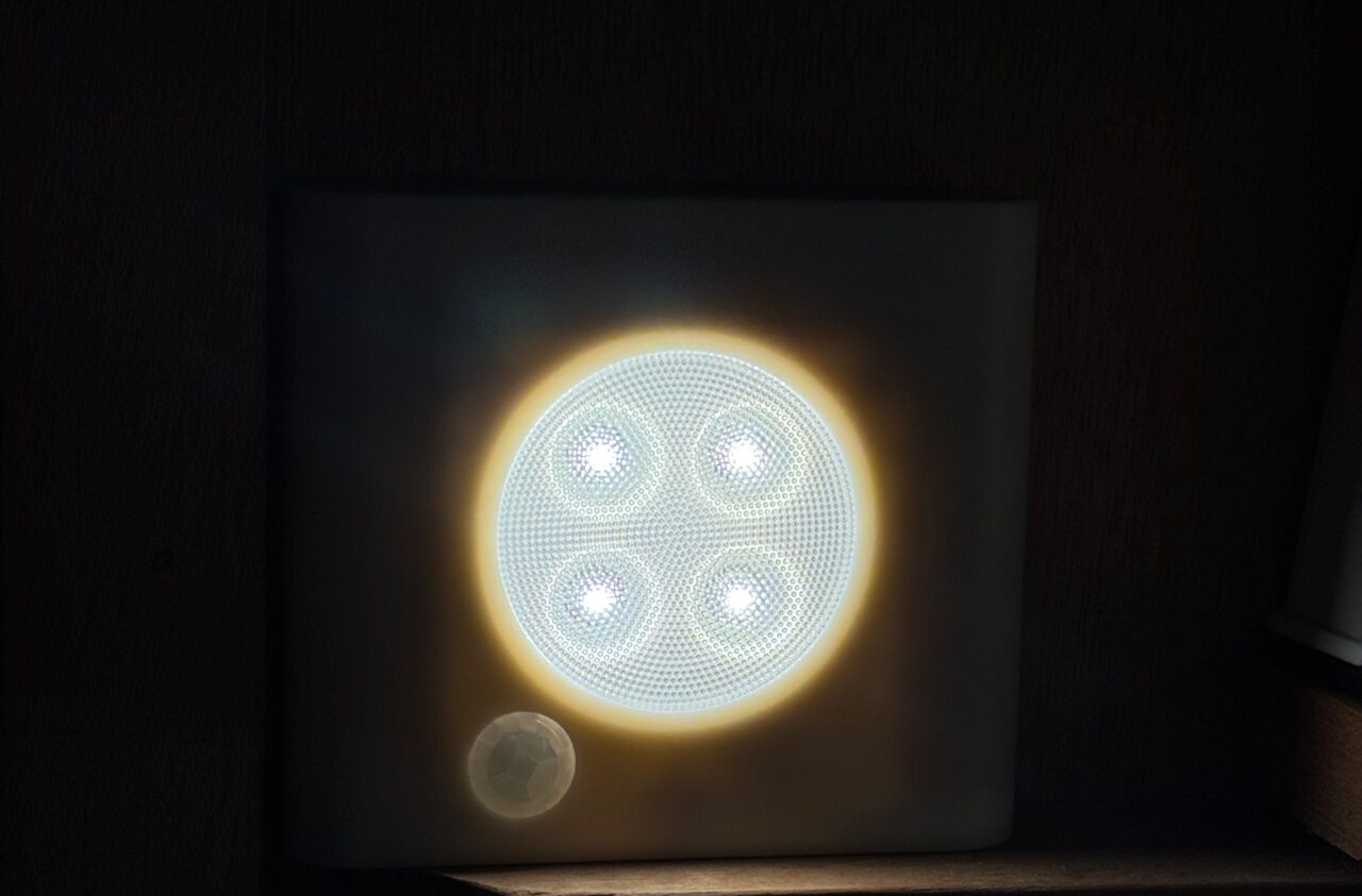 筆者もずっと気になっていたので、クローゼット用に購入しました。OLEBY オーレビーワードローブ照明 センサー付き, ホワイト2 ピース電池は別売りですが1000円ほどで購入できます。