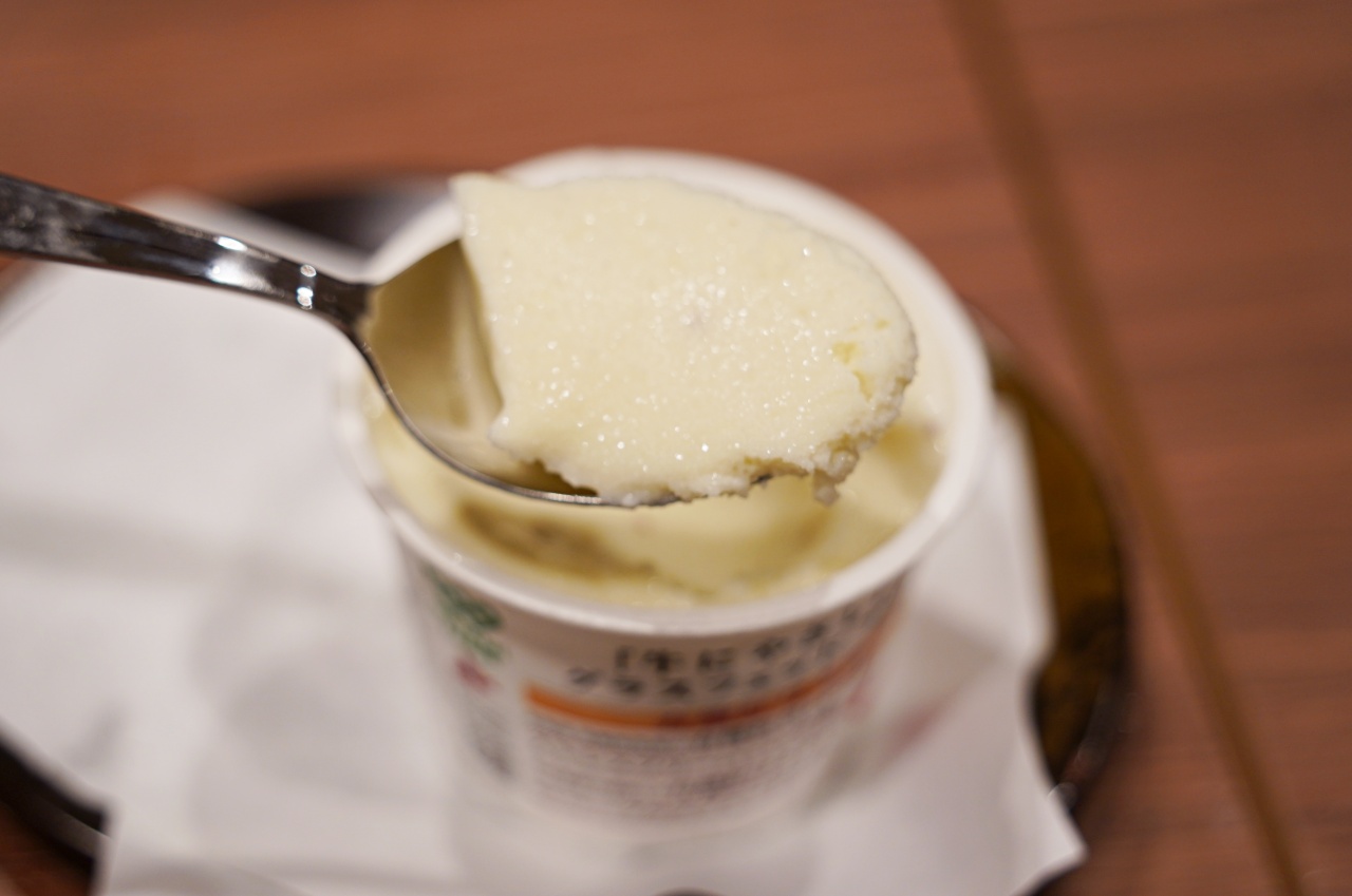 ミルクの濃厚なコクが口いっぱいに広がったあと、ほんのりとさつまいもの優しい甘さが追いかけてくる味わい。後味もすっきりしており、食後にぴったりのデザートです。
