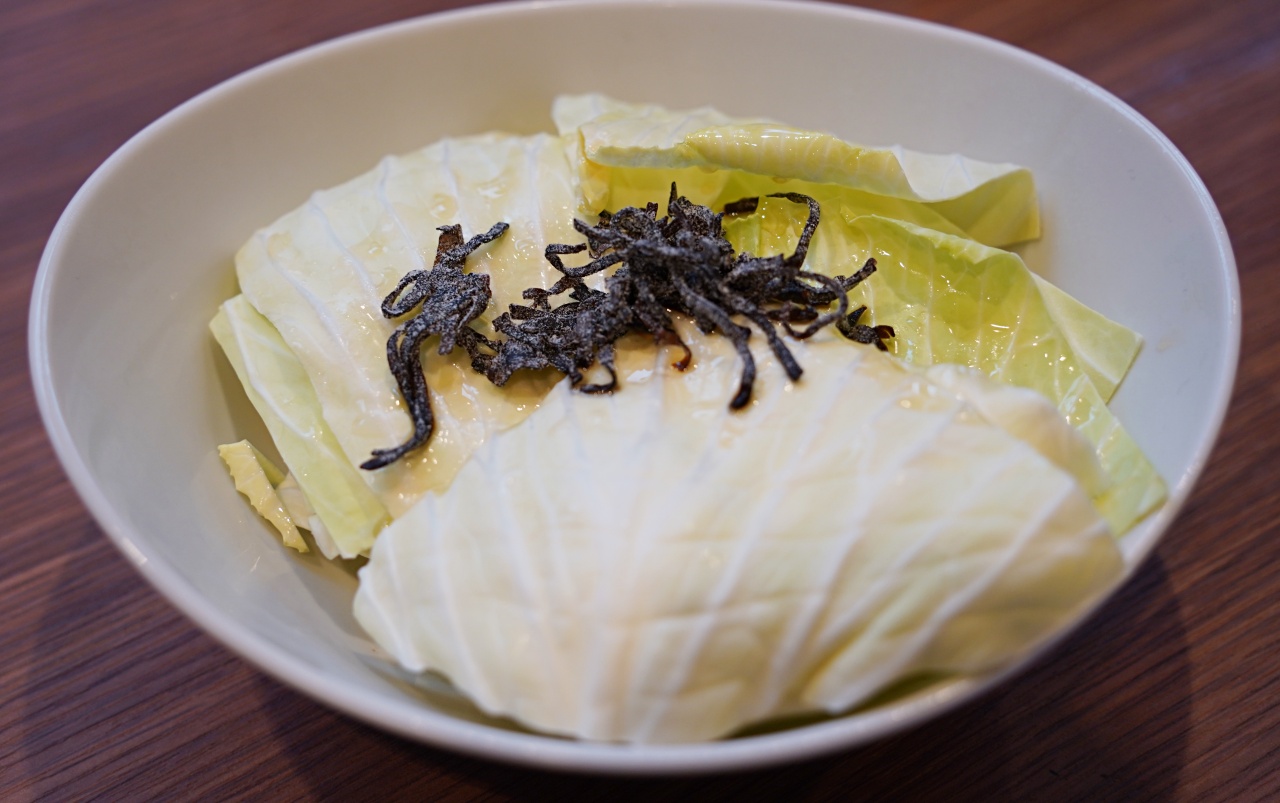 塩キャベツはおかわり自由。シンプルながらつい手が伸びる一品です。