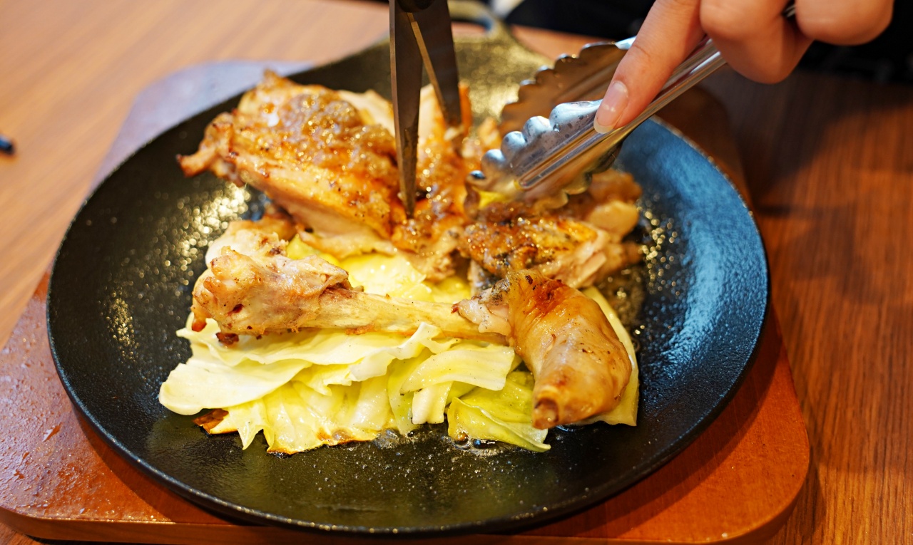 提供時は熱々の鉄板で蒸気をあげながら運ばれてきて、お店の方が食べやすい大きさに切り分けてくださいます。