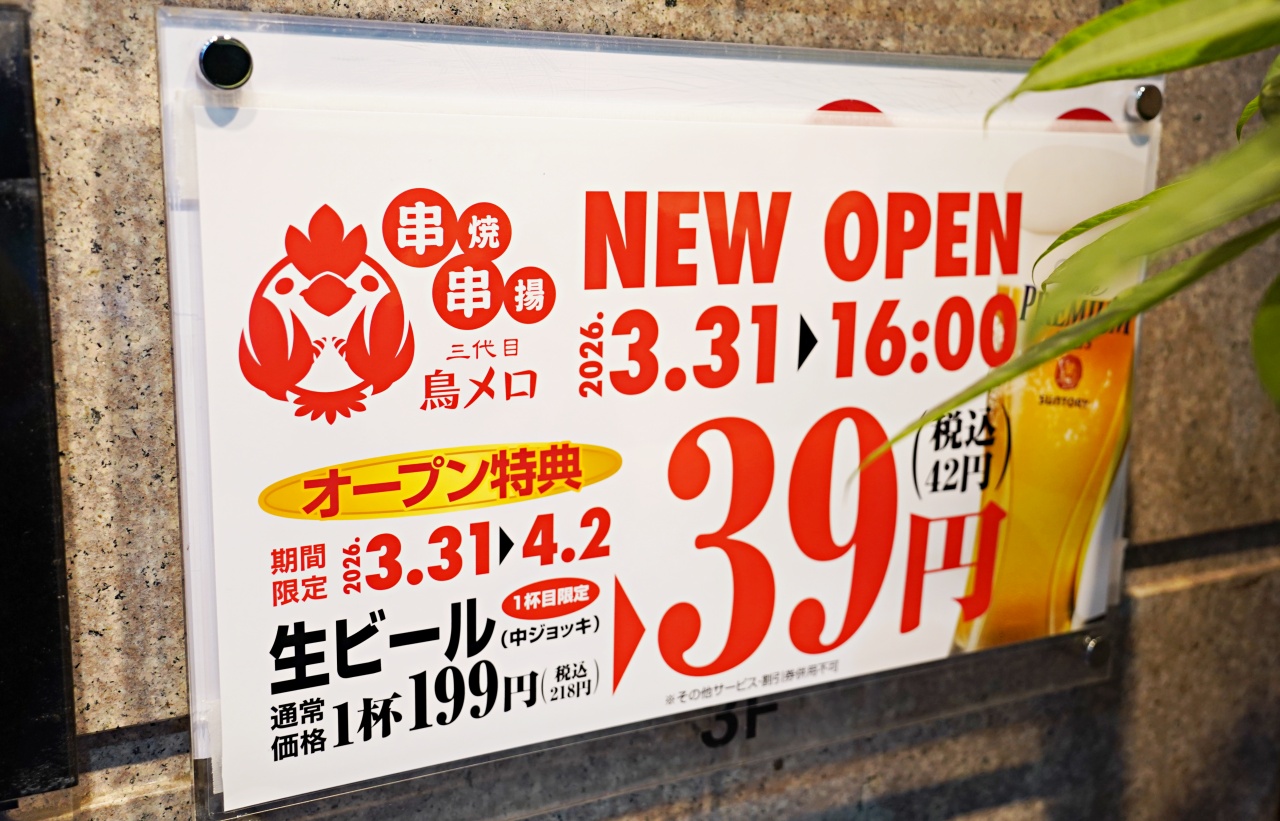 三代目鳥メロ 立川駅南口店がオープンしました!