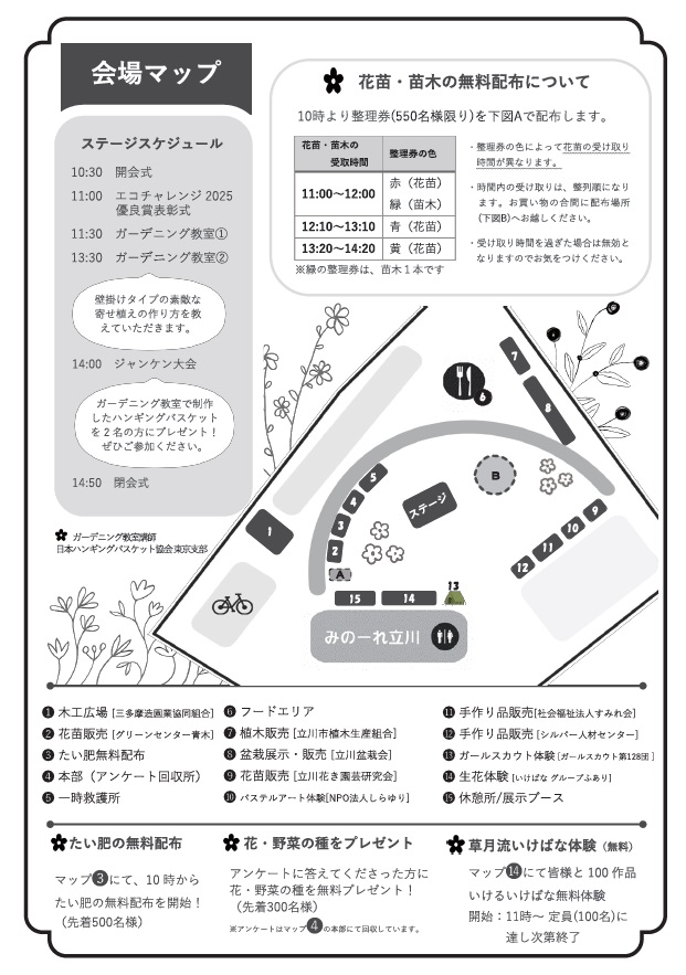 備考: 小雨決行。荒天中止の場合は、当日朝8時頃に立川市ホームページでお知らせされます。