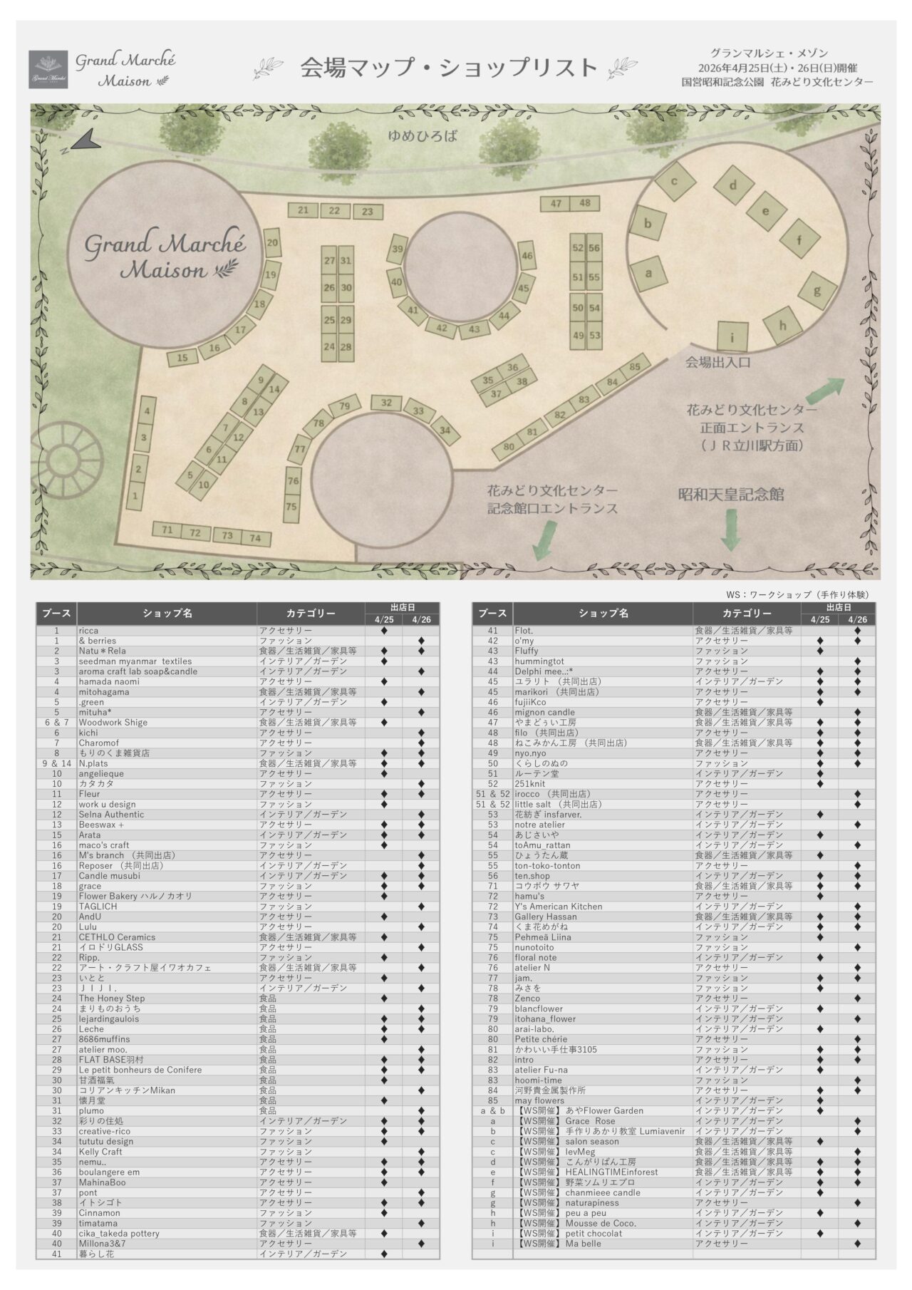 2026年4月25日(土)・26日(日)の2日間、国営昭和記念公園の「みどりの文化ゾーン(無料エリア)」内にある花みどり文化センターにて、『グランマルシェ・メゾン』が開催されます。