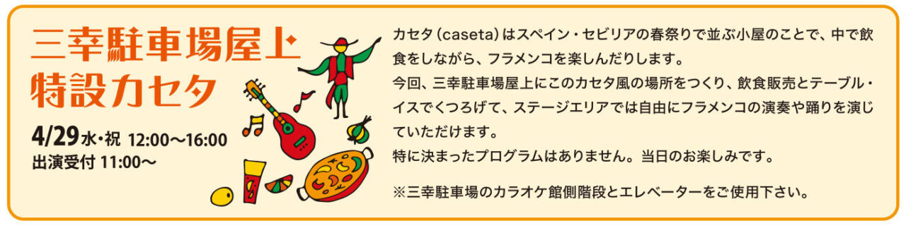 4月29日(水・祝)の本番当日、三幸駐車場の屋上が特別な空間に変わります。その名も「特設カセタ」!