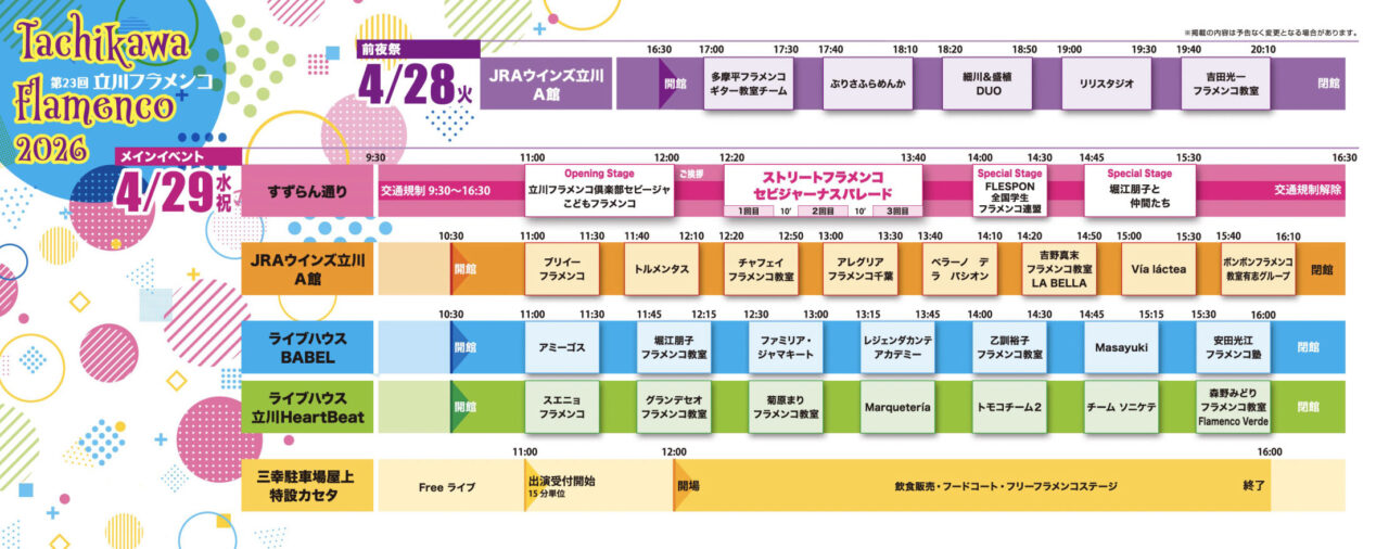 今回の立川フラメンコも、見逃せないプログラムが目白押しです。
