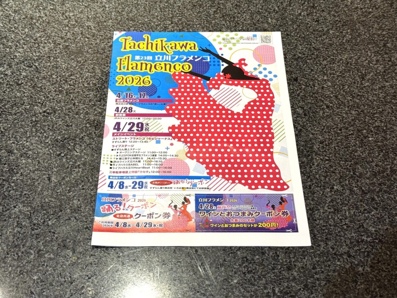 本日17日(金)の出前フラメンコ、28日の前夜祭、そして29日の本番! 皆さんもチラシを片手に、ぜひ立川駅南口へ足を運んでみてください。